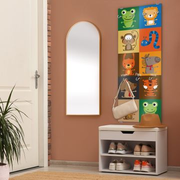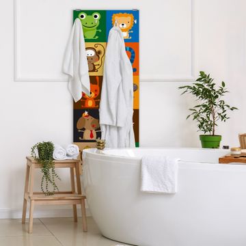 FUNKTION: Die banjado Wandgarderobe mit Motiv Offene Arme ist Ihr täglicher Begleiter. Zuverlässig hängen hier Ihre Jacken und Mäntel griffbereit. Das Echtglas ist Ihr Paneel auch beschreibbar und wieder abwischbar. DESIGN: Sie erhalten eine Garderobenleiste aus elegantem Echtglas mit dem Farbbrillanten Motiv Offene Arme hinterklebt. Das Design ist zeitlos klassisch, ohne dabei auf Funktionalität zu verzichten. Suchen Sie aus einer Vielzahl von Motiven das für Ihre Einrichtung Passende aus. DETAILS: Die Flurgarderobe besteht aus 4mm gehärtetem Sicherheitsglas. Sie ist 50cm breit, 125cm hoch und 6cm tief. Die Garderobenhaken zur Selbstmontage präsentieren sich in Edelstahl-Optik, ebenso die Abstandshalter für die Wandmontage. Ihre neue Garderobe ist sofort einsatzbereit. NUTZEN: Ihre neue Garderobe hält nicht nur zuverlässig Ihre Kleidung, sie ist auch optisch ein Blickfang. Durch das Glas können Sie an der Garderobe mit wasserlöslichen Kreidestiften oder Whiteboard-Markern auch Nachrichten hinterlassen. BANJADO: Wir sind ein kleines kreatives Team aus Sachsen und entwickeln Produkte die Design und Funktionalität verbinden sollen. Viel Freude mit Ihrer neuen Garderobe wünscht das banjado-Team!