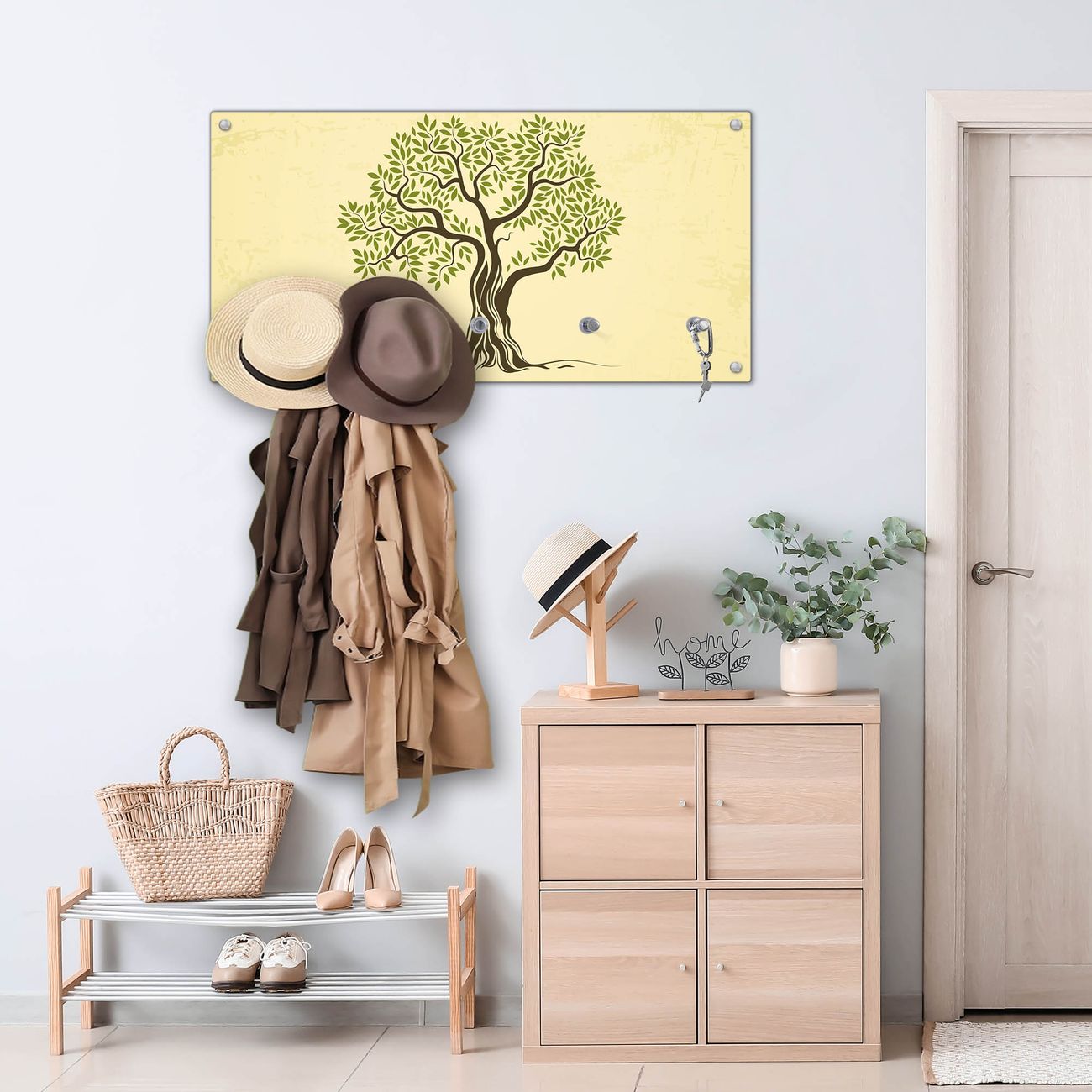 Wandgarderobe Glas 80x40cm Motiv Olivenbaum