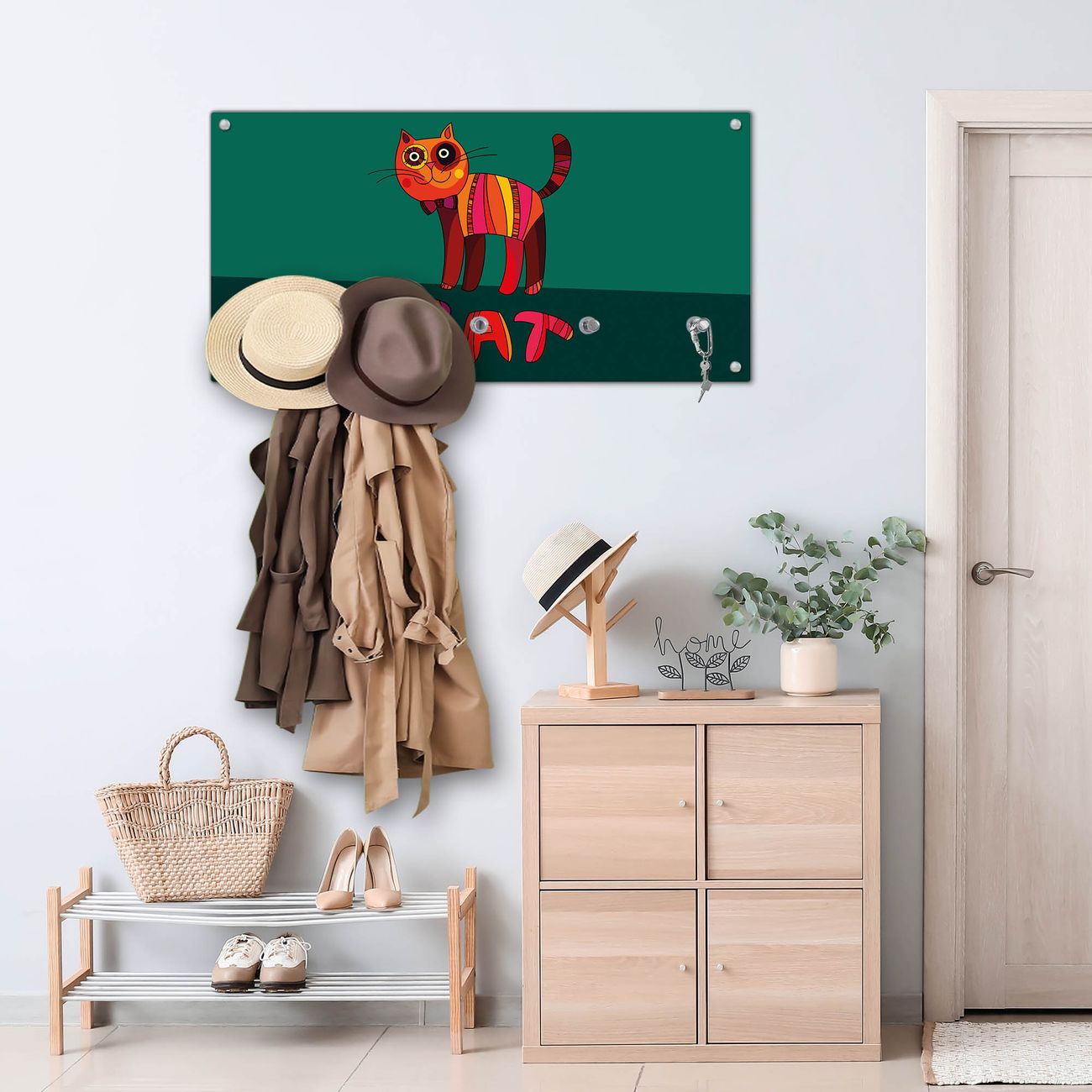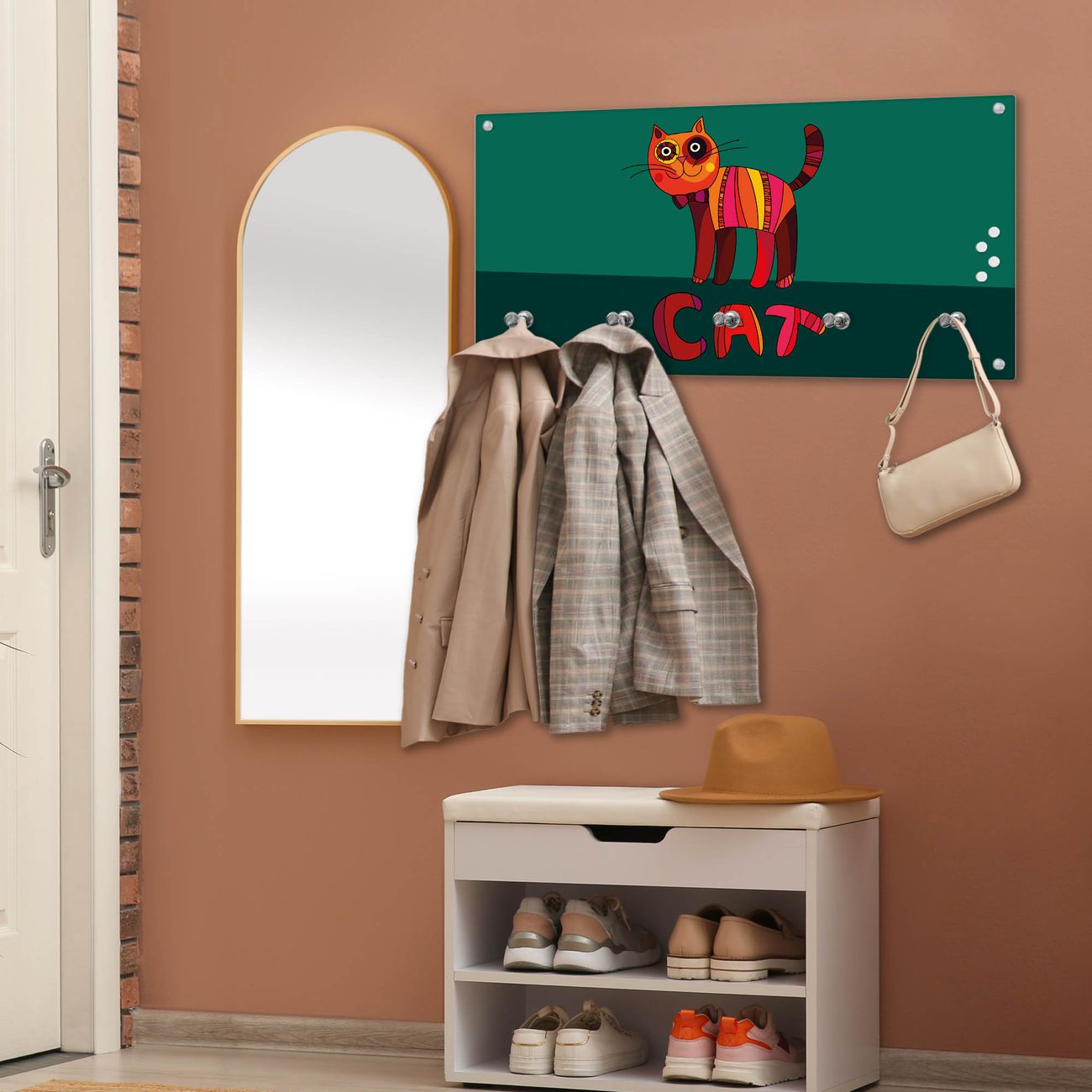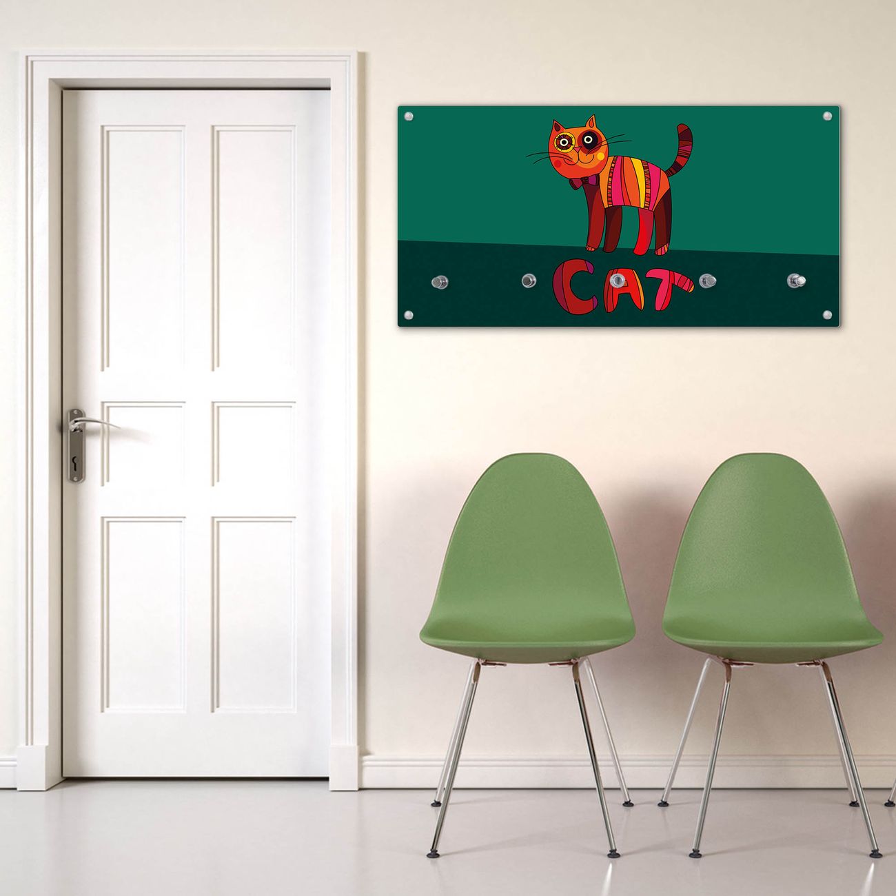 Wandgarderobe Glas 80x40cm Motiv Orange Katze