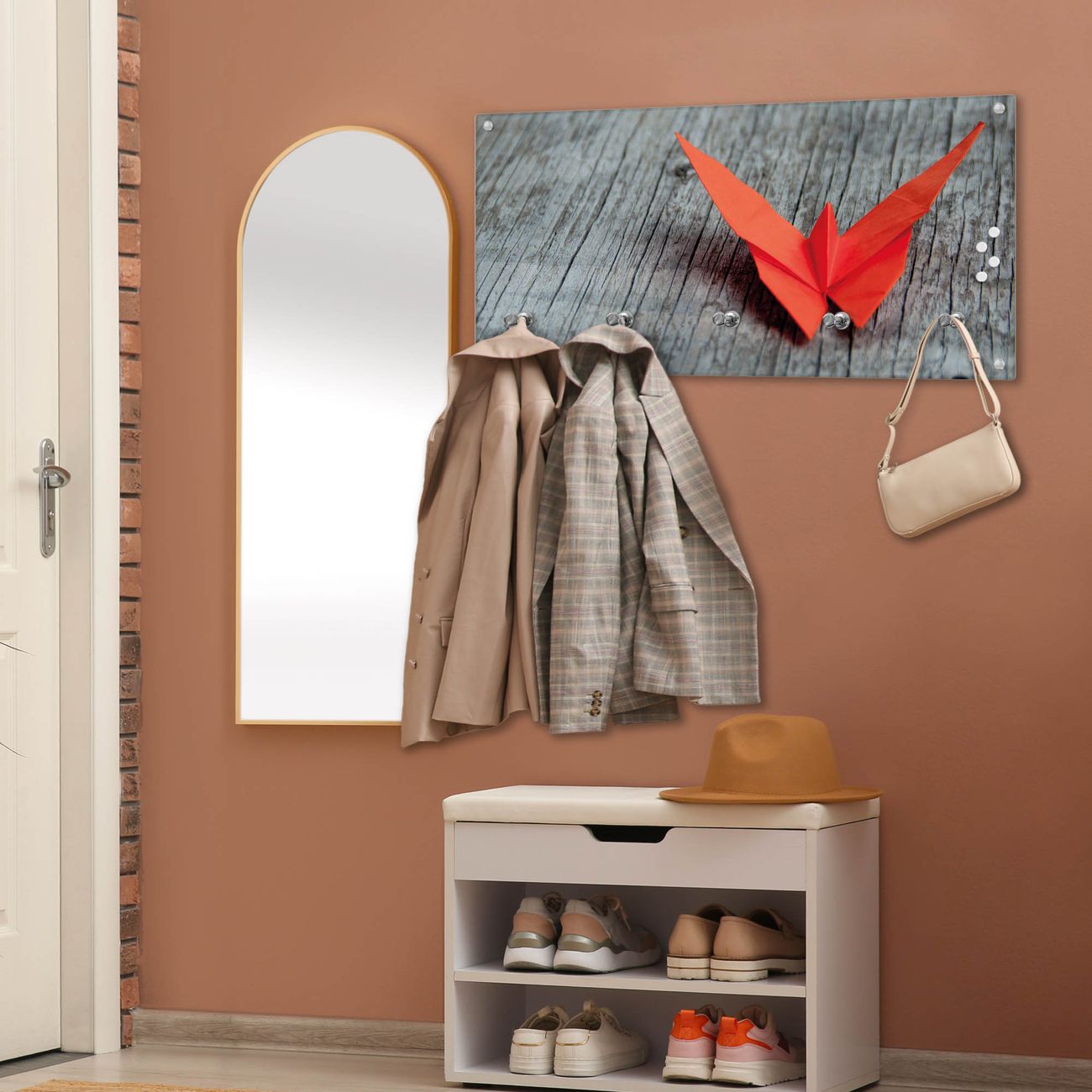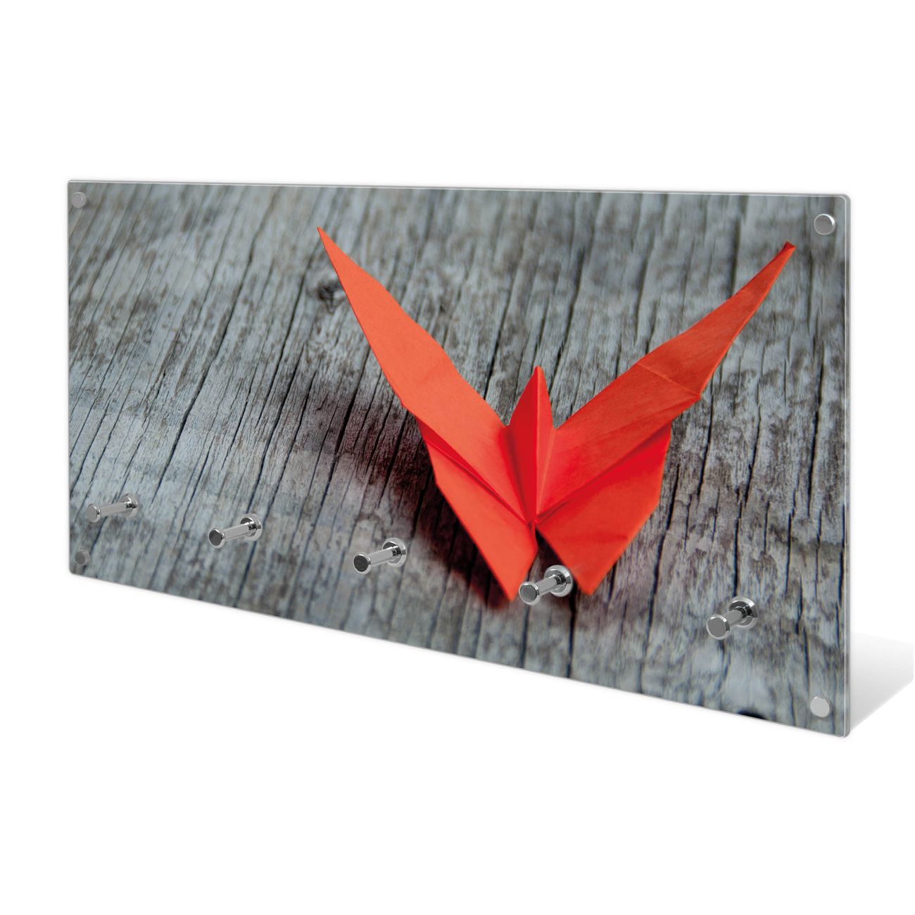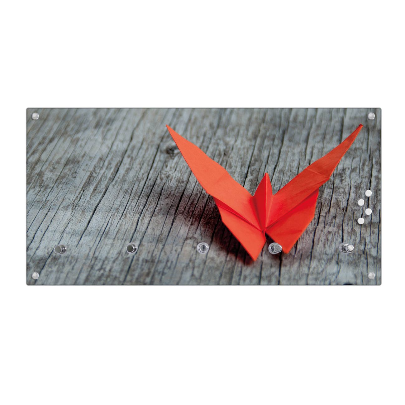 Wandgarderobe Glas 80x40cm Motiv Origami Schmetterling