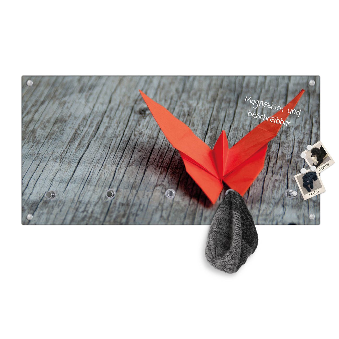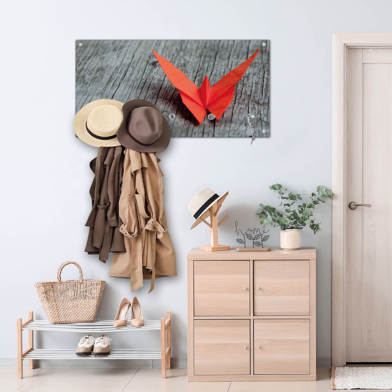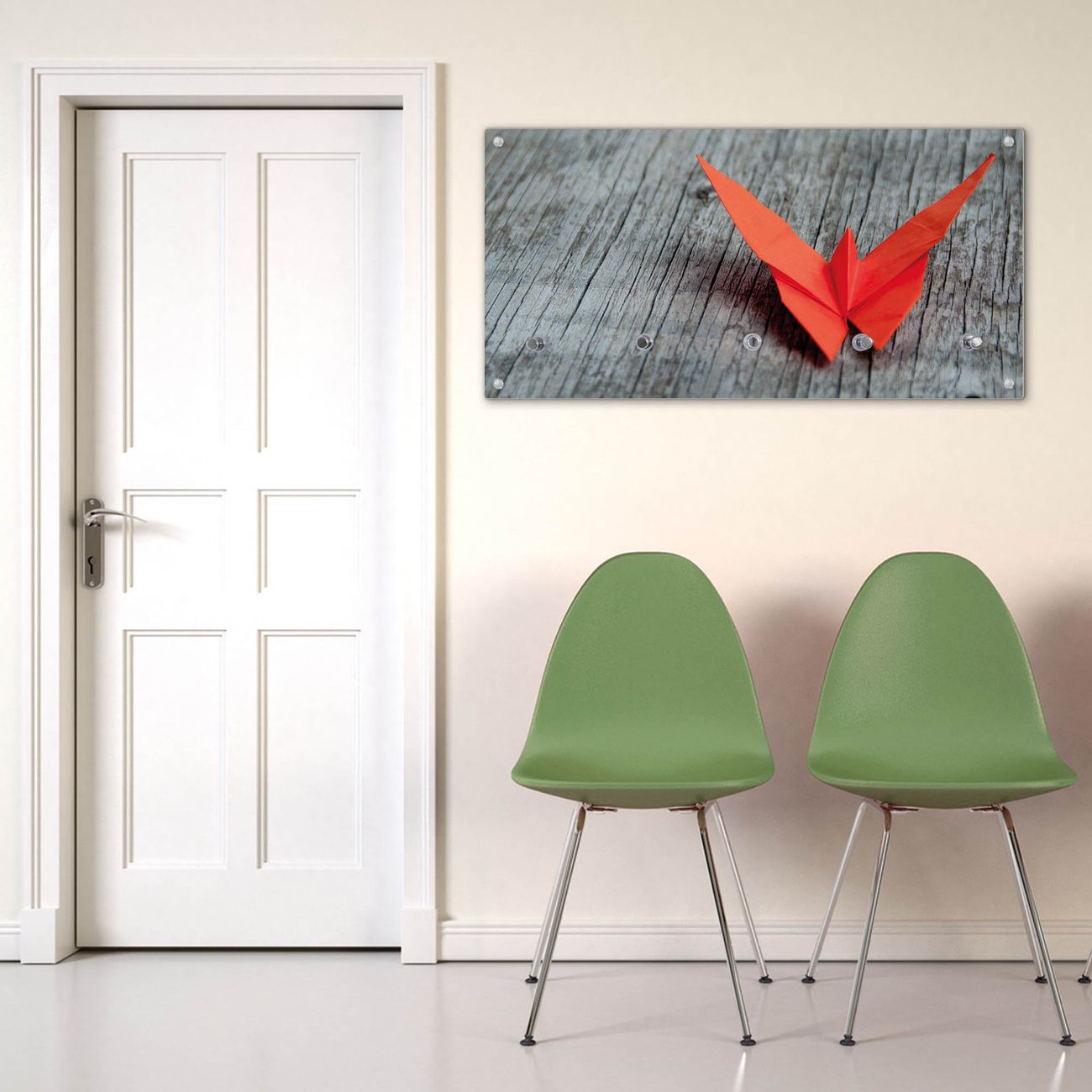 Wandgarderobe Glas 80x40cm Motiv Origami Schmetterling