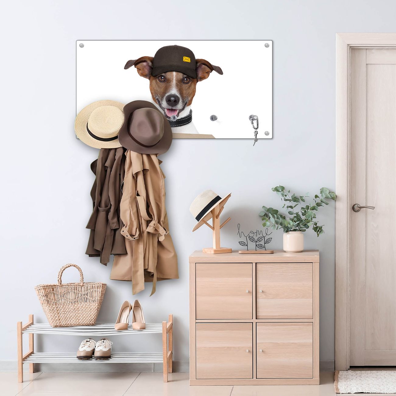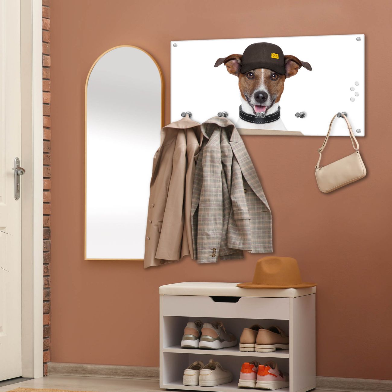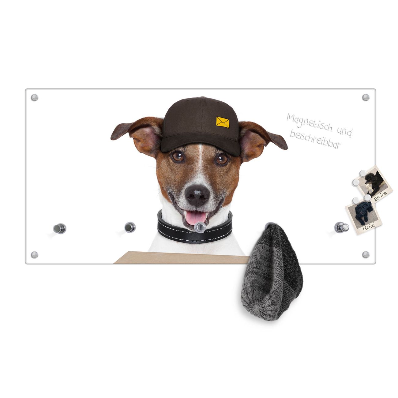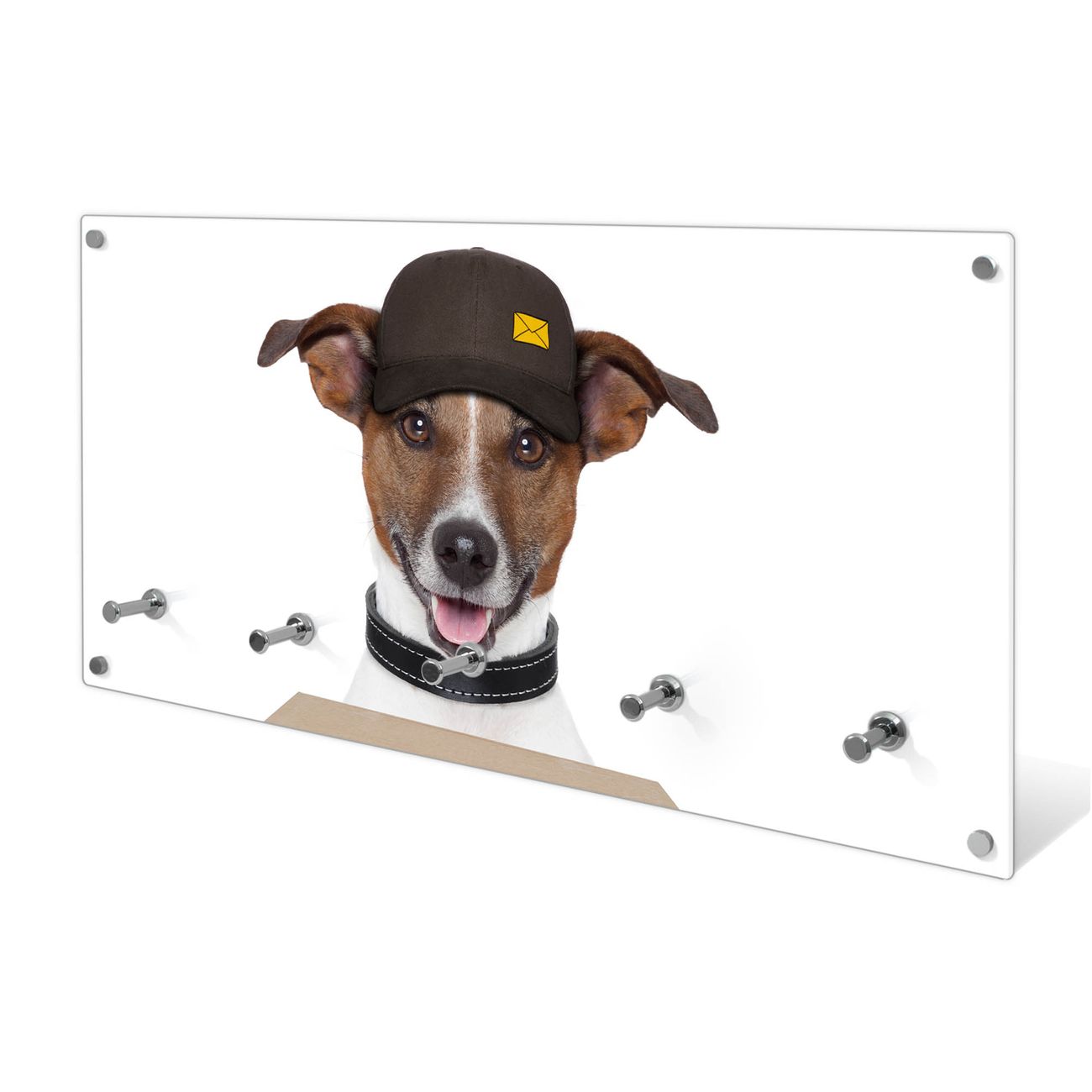 Wandgarderobe Glas 80x40cm Motiv Paketdienst Jack Russel