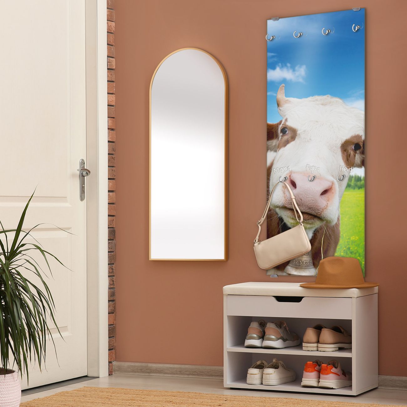 FUNKTION: Die banjado Wandgarderobe mit Motiv Pardon ist Ihr täglicher Begleiter. Zuverlässig hängen hier Ihre Jacken und Mäntel griffbereit. Das Echtglas ist Ihr Paneel auch beschreibbar und wieder abwischbar. DESIGN: Sie erhalten eine Garderobenleiste aus elegantem Echtglas mit dem Farbbrillanten Motiv Pardon hinterklebt. Das Design ist zeitlos klassisch, ohne dabei auf Funktionalität zu verzichten. Suchen Sie aus einer Vielzahl von Motiven das für Ihre Einrichtung Passende aus. DETAILS: Die Flurgarderobe besteht aus 4mm gehärtetem Sicherheitsglas. Sie ist 50cm breit, 125cm hoch und 6cm tief. Die Garderobenhaken zur Selbstmontage präsentieren sich in Edelstahl-Optik, ebenso die Abstandshalter für die Wandmontage. Ihre neue Garderobe ist sofort einsatzbereit. NUTZEN: Ihre neue Garderobe hält nicht nur zuverlässig Ihre Kleidung, sie ist auch optisch ein Blickfang. Durch das Glas können Sie an der Garderobe mit wasserlöslichen Kreidestiften oder Whiteboard-Markern auch Nachrichten hinterlassen. BANJADO: Wir sind ein kleines kreatives Team aus Sachsen und entwickeln Produkte die Design und Funktionalität verbinden sollen. Viel Freude mit Ihrer neuen Garderobe wünscht das banjado-Team!