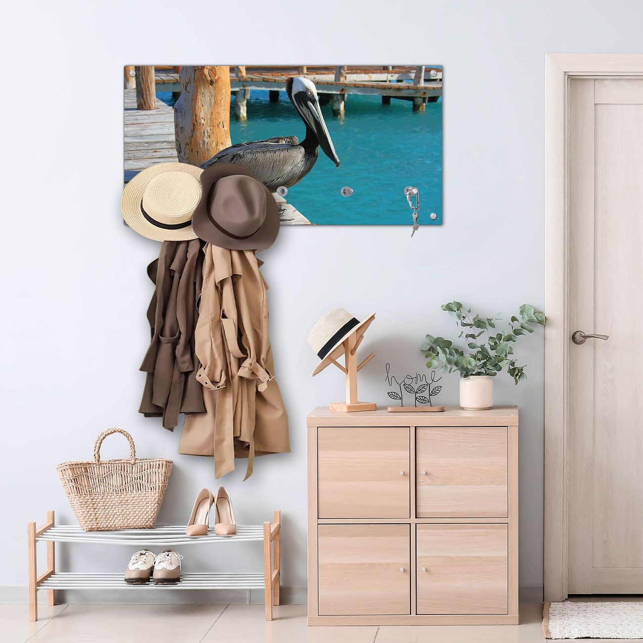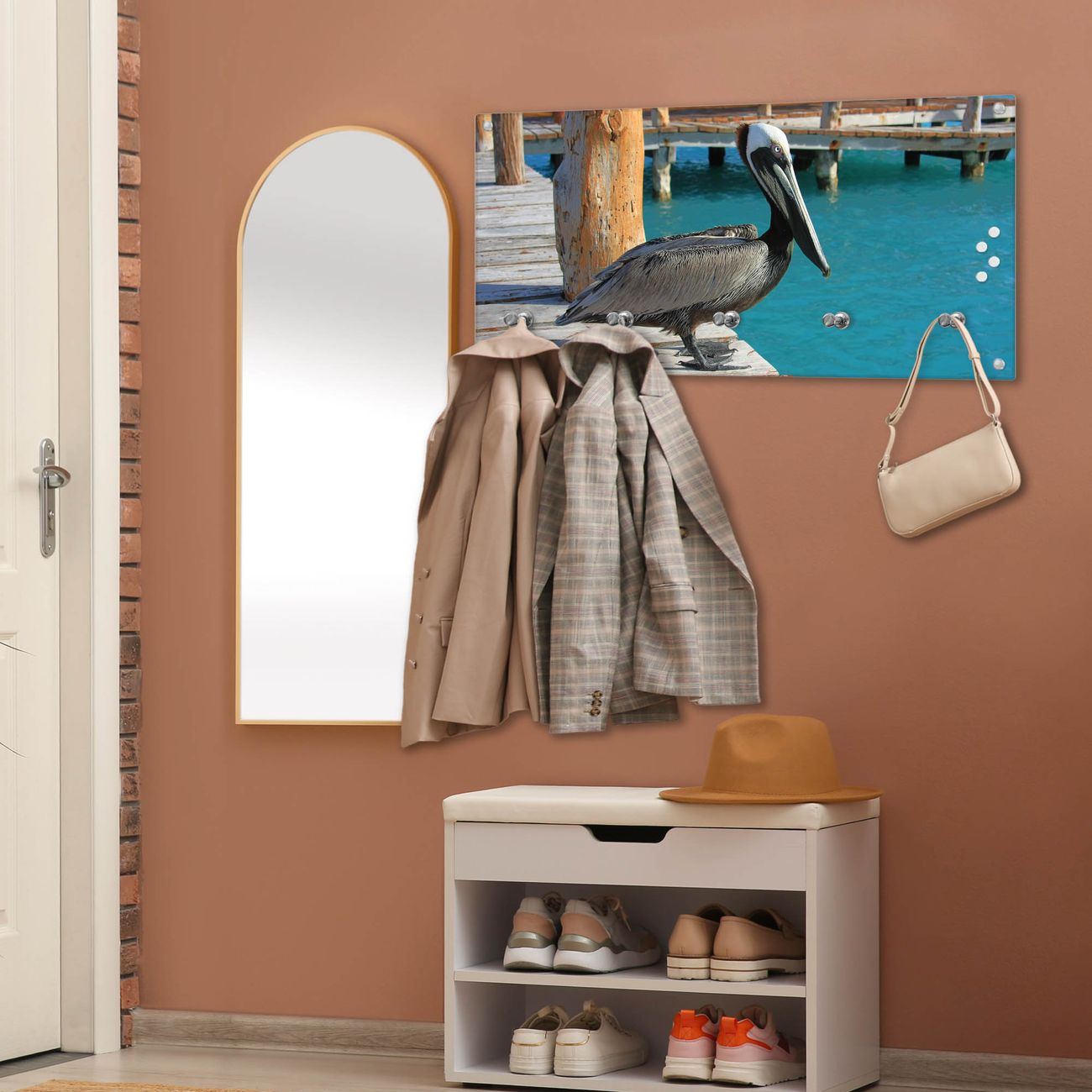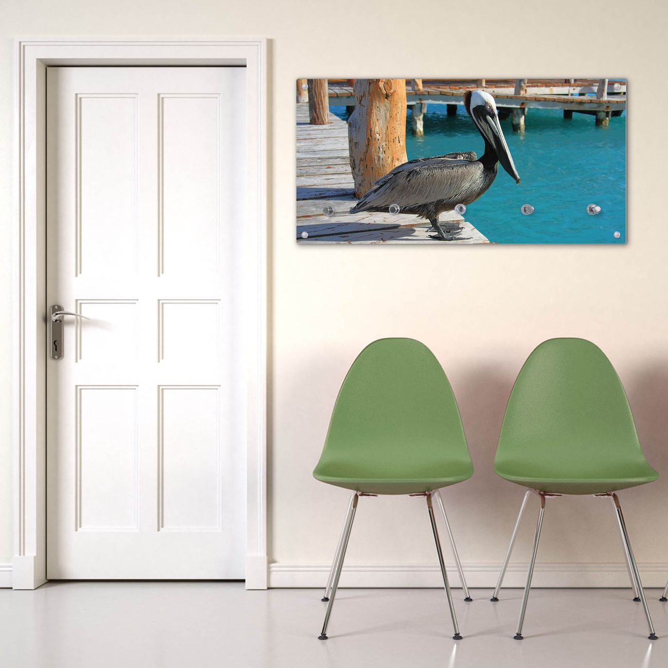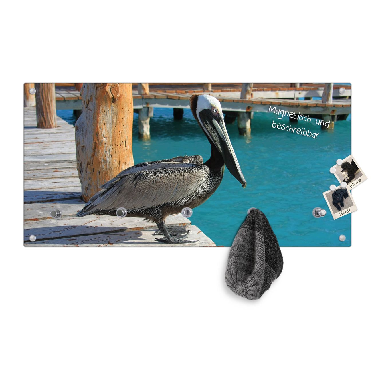 Wandgarderobe Glas 80x40cm Motiv Pelikan