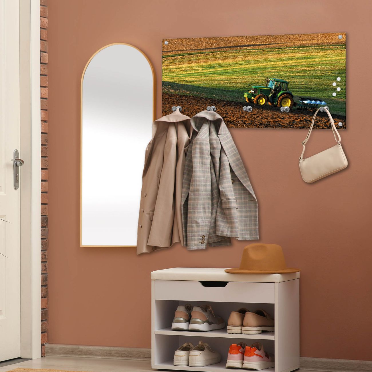 Wandgarderobe Glas 80x40cm Motiv Pflügen