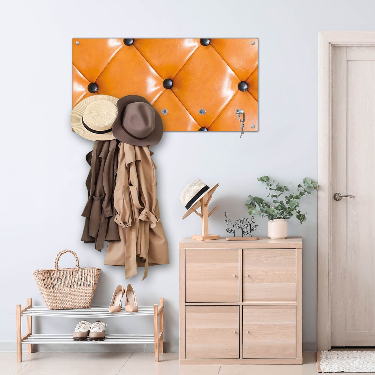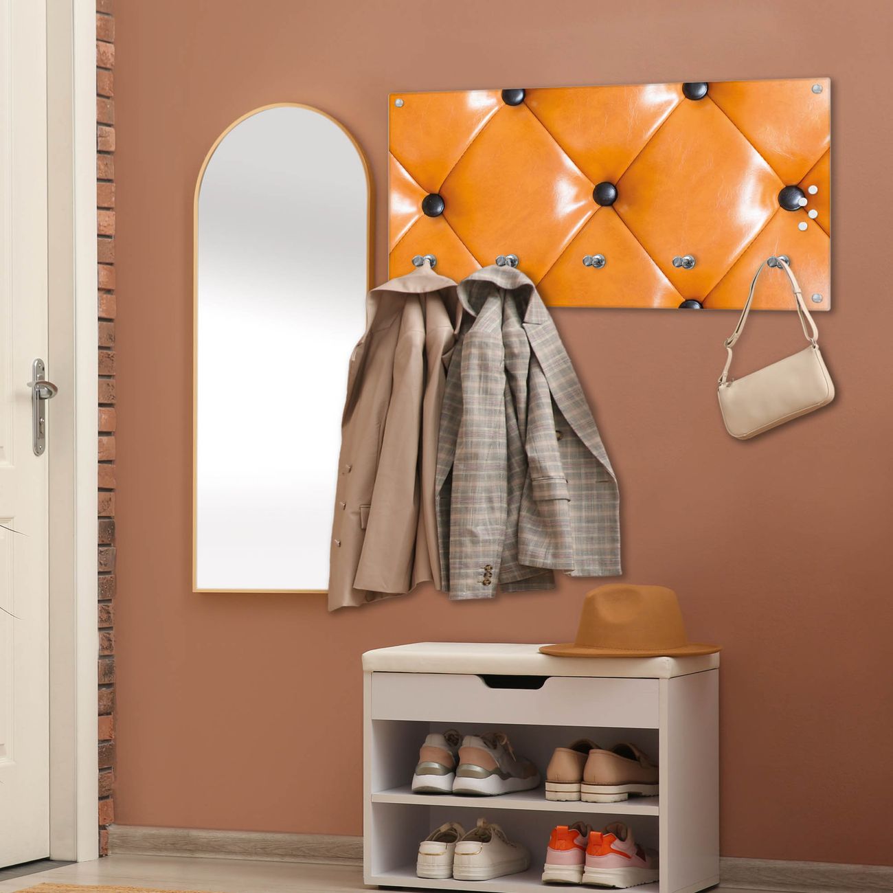 Wandgarderobe Glas 80x40cm Motiv Polster Orange