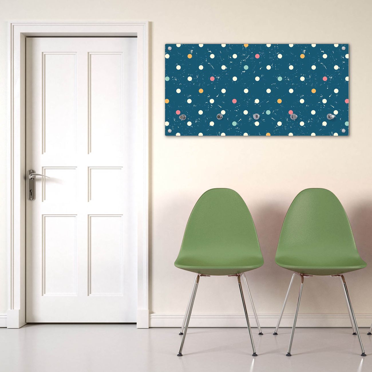 Wandgarderobe Glas 80x40cm Motiv Punkte auf Blau
