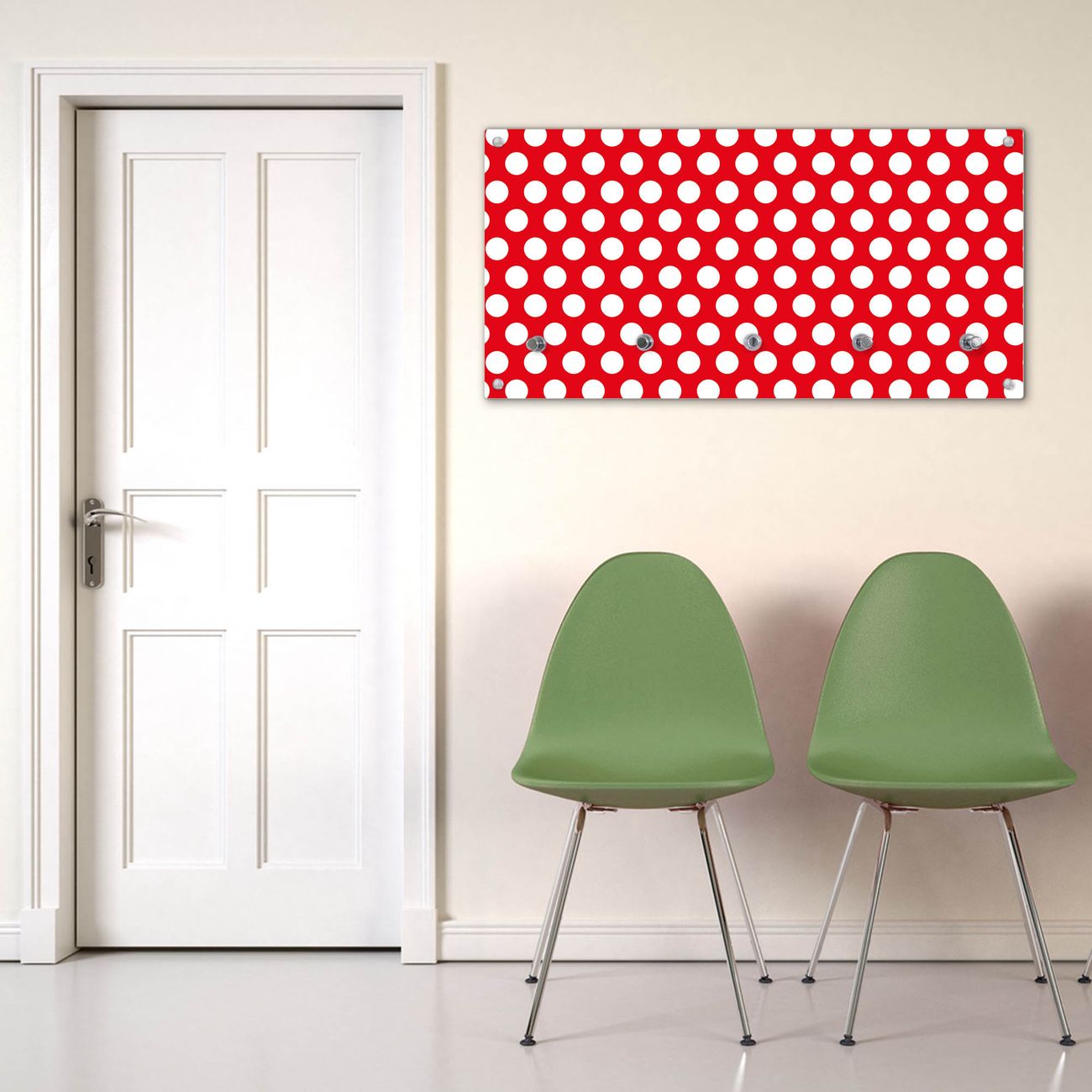Wandgarderobe Glas 80x40cm Motiv Punkte Rot