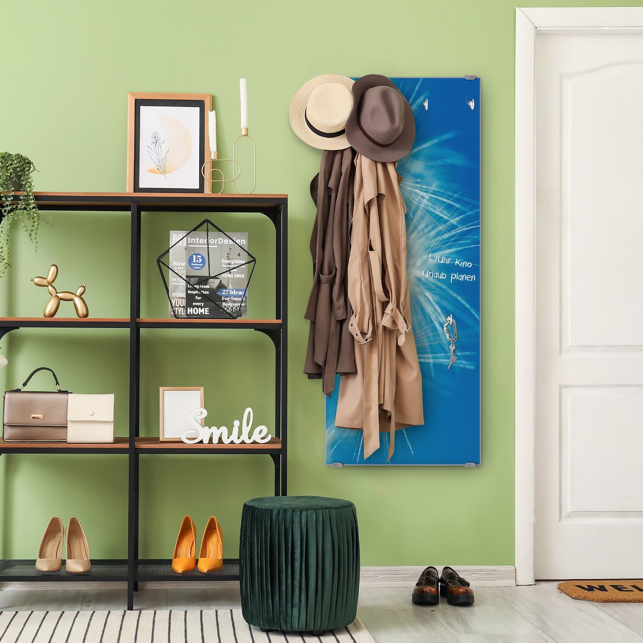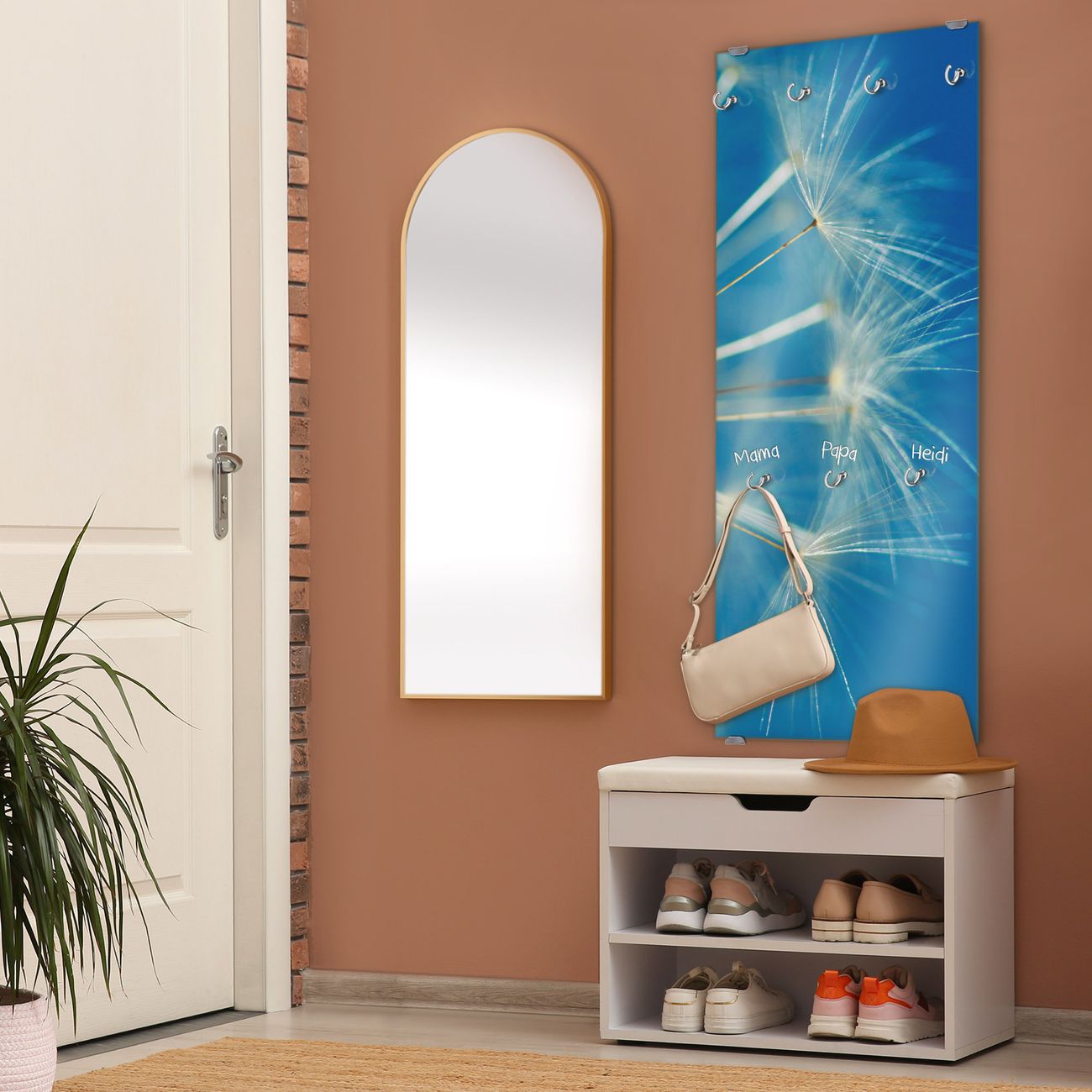 FUNKTION: Die banjado Wandgarderobe mit Motiv Pusteblume Detail ist Ihr täglicher Begleiter. Zuverlässig hängen hier Ihre Jacken und Mäntel griffbereit. Das Echtglas ist Ihr Paneel auch beschreibbar und wieder abwischbar. DESIGN: Sie erhalten eine Garderobenleiste aus elegantem Echtglas mit dem Farbbrillanten Motiv Pusteblume Detail hinterklebt. Das Design ist zeitlos klassisch, ohne dabei auf Funktionalität zu verzichten. Suchen Sie aus einer Vielzahl von Motiven das für Ihre Einrichtung Passende aus. DETAILS: Die Flurgarderobe besteht aus 4mm gehärtetem Sicherheitsglas. Sie ist 50cm breit, 125cm hoch und 6cm tief. Die Garderobenhaken zur Selbstmontage präsentieren sich in Edelstahl-Optik, ebenso die Abstandshalter für die Wandmontage. Ihre neue Garderobe ist sofort einsatzbereit. NUTZEN: Ihre neue Garderobe hält nicht nur zuverlässig Ihre Kleidung, sie ist auch optisch ein Blickfang. Durch das Glas können Sie an der Garderobe mit wasserlöslichen Kreidestiften oder Whiteboard-Markern auch Nachrichten hinterlassen. BANJADO: Wir sind ein kleines kreatives Team aus Sachsen und entwickeln Produkte die Design und Funktionalität verbinden sollen. Viel Freude mit Ihrer neuen Garderobe wünscht das banjado-Team!