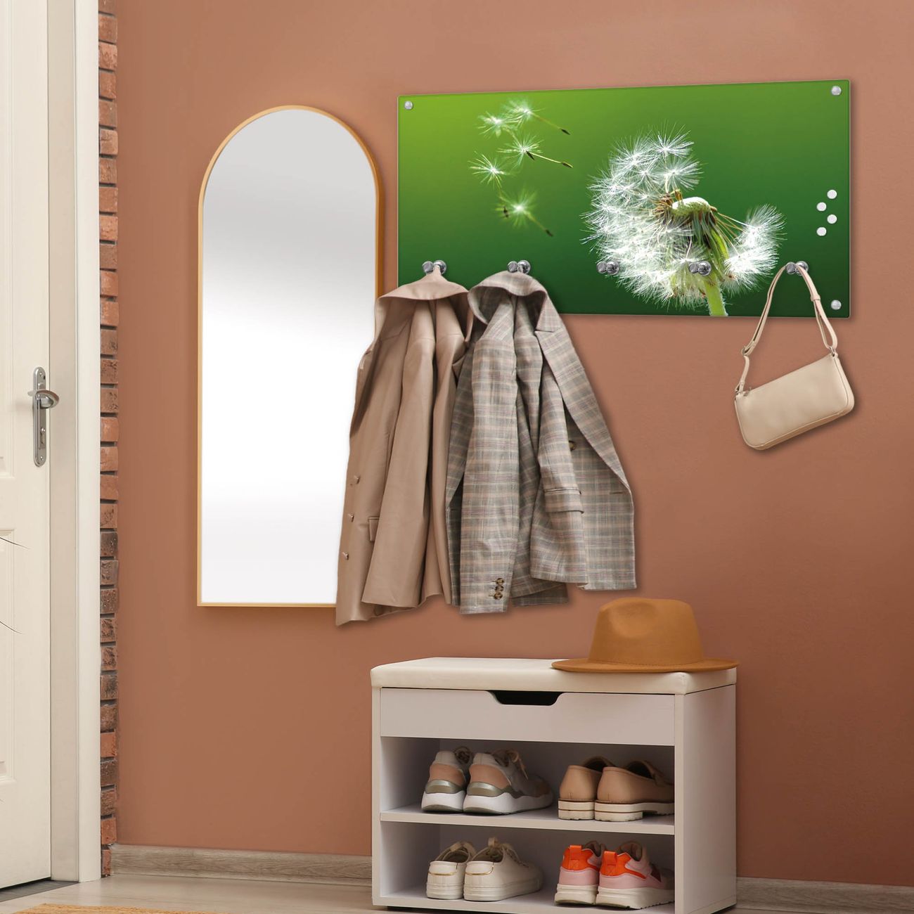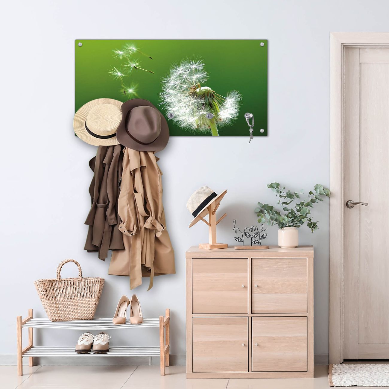 Wandgarderobe Glas 80x40cm Motiv Pusteblume
