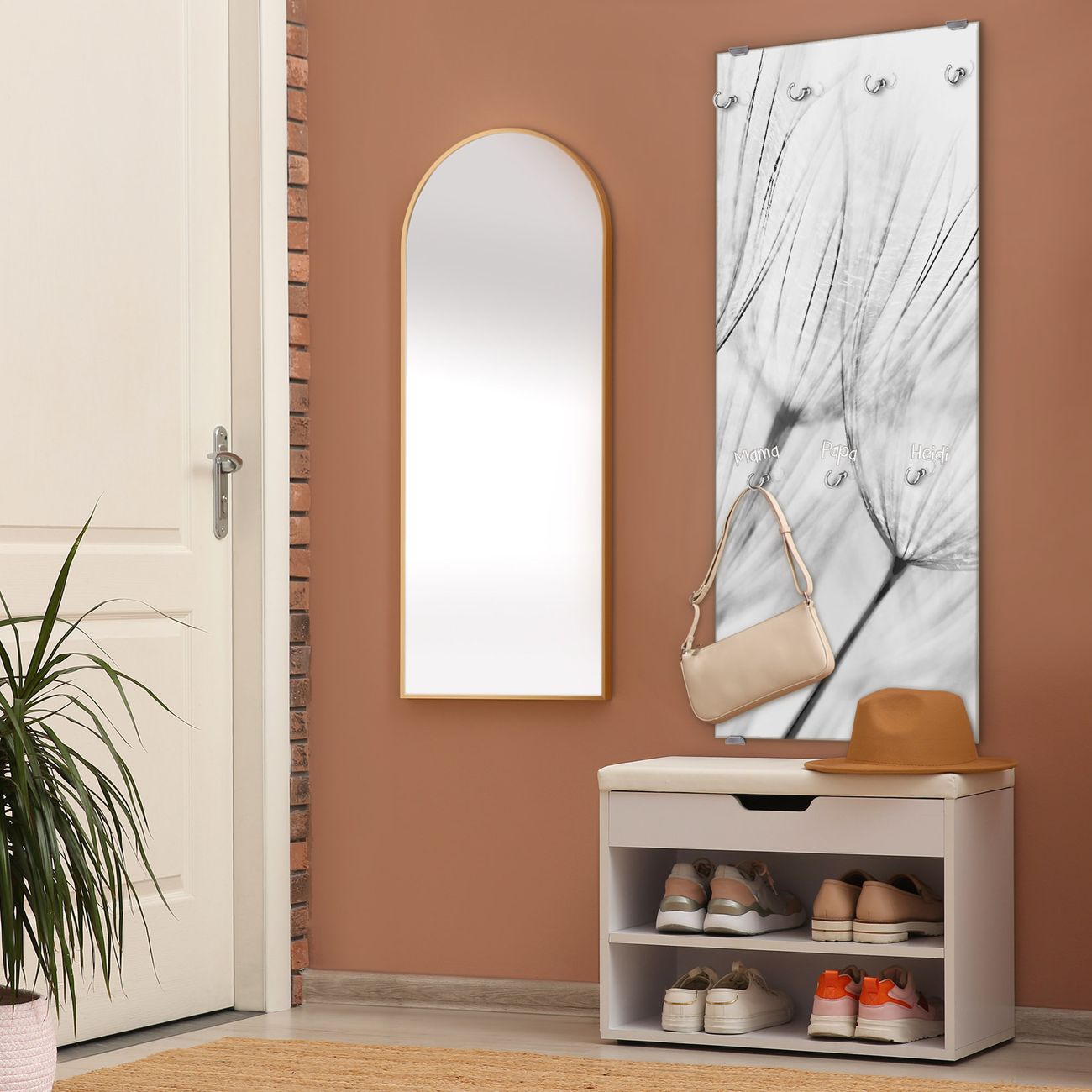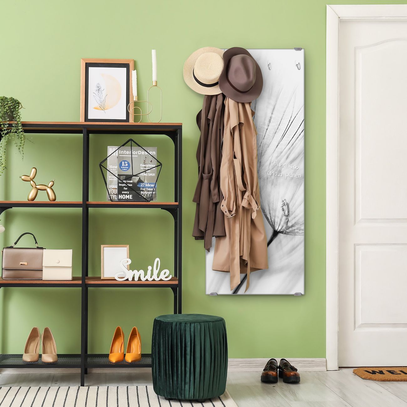 FUNKTION: Die banjado Wandgarderobe mit Motiv Pusteblumen SW ist Ihr täglicher Begleiter. Zuverlässig hängen hier Ihre Jacken und Mäntel griffbereit. Das Echtglas ist Ihr Paneel auch beschreibbar und wieder abwischbar. DESIGN: Sie erhalten eine Garderobenleiste aus elegantem Echtglas mit dem Farbbrillanten Motiv Pusteblumen SW hinterklebt. Das Design ist zeitlos klassisch, ohne dabei auf Funktionalität zu verzichten. Suchen Sie aus einer Vielzahl von Motiven das für Ihre Einrichtung Passende aus. DETAILS: Die Flurgarderobe besteht aus 4mm gehärtetem Sicherheitsglas. Sie ist 50cm breit, 125cm hoch und 6cm tief. Die Garderobenhaken zur Selbstmontage präsentieren sich in Edelstahl-Optik, ebenso die Abstandshalter für die Wandmontage. Ihre neue Garderobe ist sofort einsatzbereit. NUTZEN: Ihre neue Garderobe hält nicht nur zuverlässig Ihre Kleidung, sie ist auch optisch ein Blickfang. Durch das Glas können Sie an der Garderobe mit wasserlöslichen Kreidestiften oder Whiteboard-Markern auch Nachrichten hinterlassen. BANJADO: Wir sind ein kleines kreatives Team aus Sachsen und entwickeln Produkte die Design und Funktionalität verbinden sollen. Viel Freude mit Ihrer neuen Garderobe wünscht das banjado-Team!