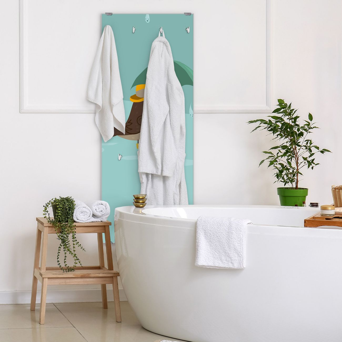 FUNKTION: Die banjado Wandgarderobe mit Motiv Rainbird ist Ihr täglicher Begleiter. Zuverlässig hängen hier Ihre Jacken und Mäntel griffbereit. Das Echtglas ist Ihr Paneel auch beschreibbar und wieder abwischbar. DESIGN: Sie erhalten eine Garderobenleiste aus elegantem Echtglas mit dem Farbbrillanten Motiv Rainbird hinterklebt. Das Design ist zeitlos klassisch, ohne dabei auf Funktionalität zu verzichten. Suchen Sie aus einer Vielzahl von Motiven das für Ihre Einrichtung Passende aus. DETAILS: Die Flurgarderobe besteht aus 4mm gehärtetem Sicherheitsglas. Sie ist 50cm breit, 125cm hoch und 6cm tief. Die Garderobenhaken zur Selbstmontage präsentieren sich in Edelstahl-Optik, ebenso die Abstandshalter für die Wandmontage. Ihre neue Garderobe ist sofort einsatzbereit. NUTZEN: Ihre neue Garderobe hält nicht nur zuverlässig Ihre Kleidung, sie ist auch optisch ein Blickfang. Durch das Glas können Sie an der Garderobe mit wasserlöslichen Kreidestiften oder Whiteboard-Markern auch Nachrichten hinterlassen. BANJADO: Wir sind ein kleines kreatives Team aus Sachsen und entwickeln Produkte die Design und Funktionalität verbinden sollen. Viel Freude mit Ihrer neuen Garderobe wünscht das banjado-Team!
