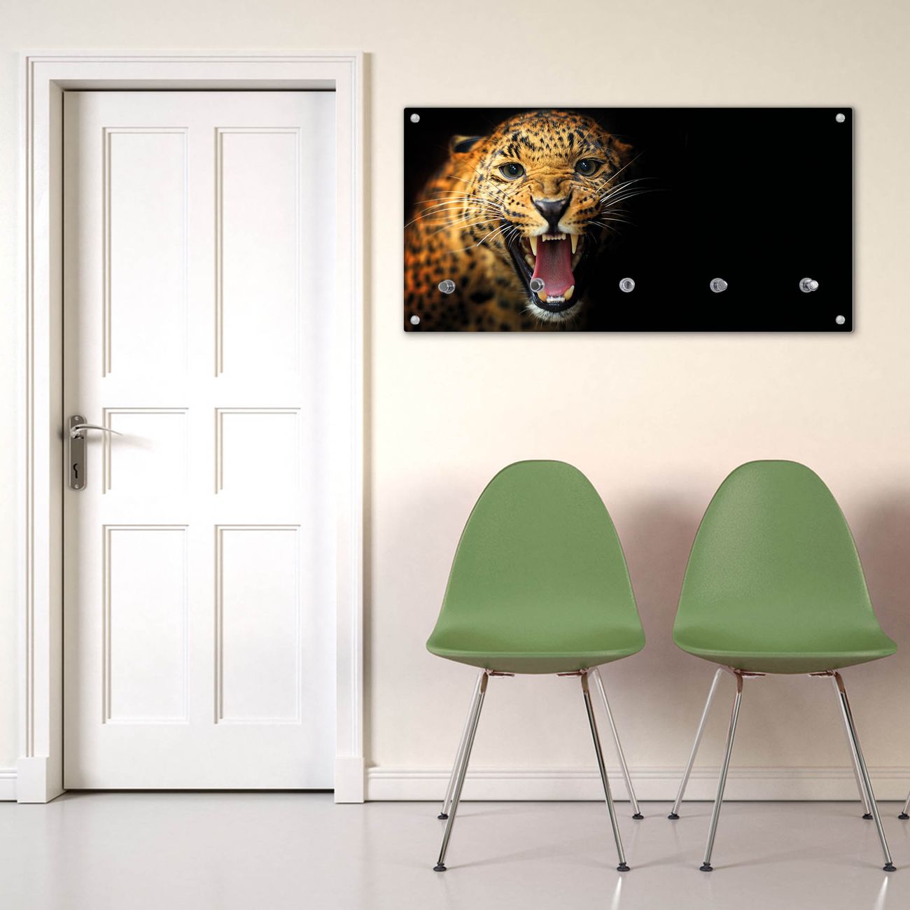 Wandgarderobe Glas 80x40cm Motiv Raubkatze