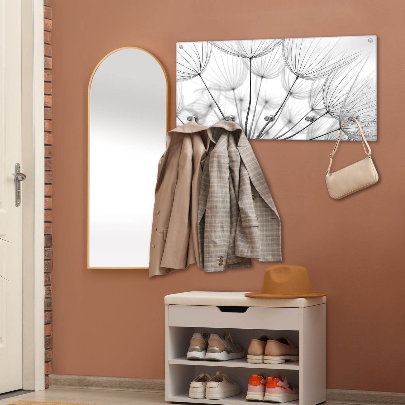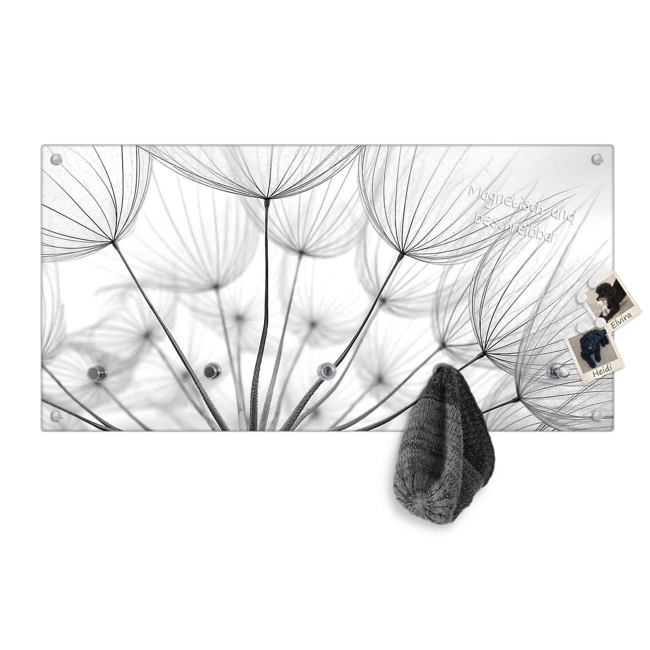 Bitte beachten Sie, dass an dieser Garderobe nur starke Neodym-Magnete halten! FUNKTION: Die banjado Wandgarderobe mit Motiv Ready For Takeoff ist Ihr täglicher Begleiter. Zuverlässig hängen hier Ihre Jacken und Mäntel griffbereit. Gleichzeitig ist die Design Garderobe magnetisch, Sie können Notizen anheften und durch das Echtglas ist Ihr Paneel auch beschreibbar und wieder abwischbar. DESIGN: Sie erhalten eine Garderobenleiste aus elegantem Echtglas mit dem Farbbrillanten Motiv Ready For Takeoff hinterklebt. Das Design ist zeitlos klassisch, ohne dabei auf Funktionalität zu verzichten. Suchen Sie aus einer Vielzahl von Motiven das für Ihre Einrichtung Passende aus. DETAILS: Die Flurgarderobe besteht aus 4mm gehärtetem Sicherheitsglas. Sie ist 80cm breit, 40cm hoch und 6cm tief. Die Garderobenhaken zur Selbstmontage präsentieren sich in Edelstahl-Optik, ebenso die Abstandshalter für die Wandmontage. Ihre neue Garderobe ist sofort einsatzbereit. NUTZEN: Ihre neue Garderobe hält nicht nur zuverlässig Ihre Kleidung, sie ist auch optisch ein Blickfang. Durch die magnetische Wirkung können Sie mit 4 beigefügten extrastarken Neodym-Magneten Notizen anheften und mit wasserlöslichen Kreidestiften oder Whiteboard-Markern auch Nachrichten hinterlassen. BANJADO: Wir sind ein kleines kreatives Team aus Sachsen und entwickeln Produkte die Design und Funktionalität verbinden sollen. Viel Freude mit Ihrer neuen Garderobe wünscht das banjado-Team!