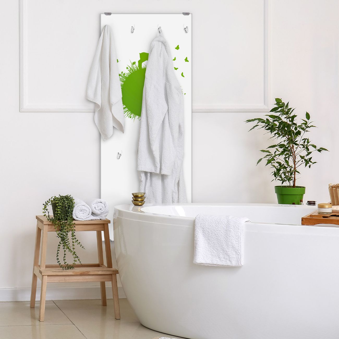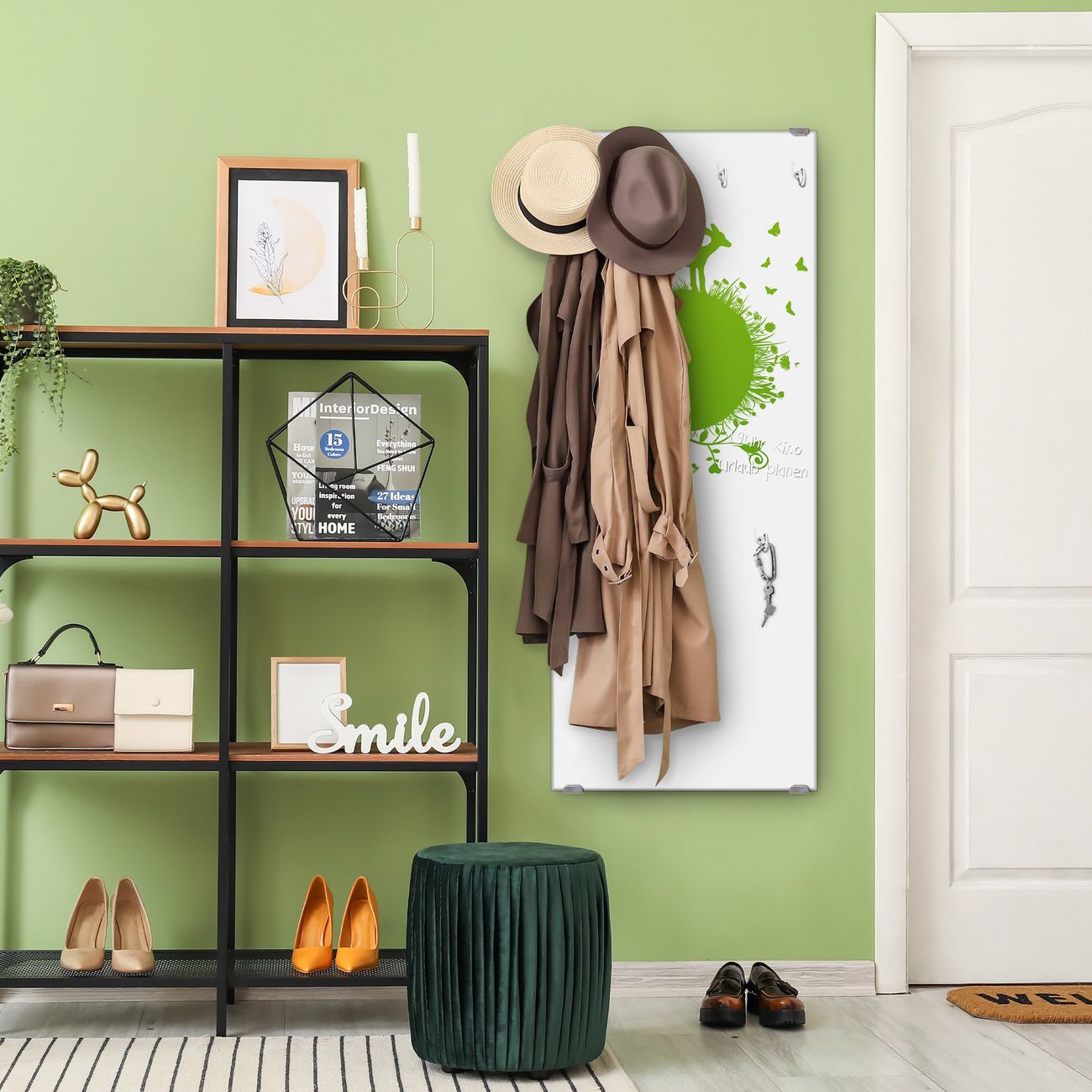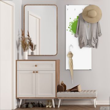 FUNKTION: Die banjado Wandgarderobe mit Motiv Rehkitz ist Ihr täglicher Begleiter. Zuverlässig hängen hier Ihre Jacken und Mäntel griffbereit. Das Echtglas ist Ihr Paneel auch beschreibbar und wieder abwischbar. DESIGN: Sie erhalten eine Garderobenleiste aus elegantem Echtglas mit dem Farbbrillanten Motiv Rehkitz hinterklebt. Das Design ist zeitlos klassisch, ohne dabei auf Funktionalität zu verzichten. Suchen Sie aus einer Vielzahl von Motiven das für Ihre Einrichtung Passende aus. DETAILS: Die Flurgarderobe besteht aus 4mm gehärtetem Sicherheitsglas. Sie ist 50cm breit, 125cm hoch und 6cm tief. Die Garderobenhaken zur Selbstmontage präsentieren sich in Edelstahl-Optik, ebenso die Abstandshalter für die Wandmontage. Ihre neue Garderobe ist sofort einsatzbereit. NUTZEN: Ihre neue Garderobe hält nicht nur zuverlässig Ihre Kleidung, sie ist auch optisch ein Blickfang. Durch das Glas können Sie an der Garderobe mit wasserlöslichen Kreidestiften oder Whiteboard-Markern auch Nachrichten hinterlassen. BANJADO: Wir sind ein kleines kreatives Team aus Sachsen und entwickeln Produkte die Design und Funktionalität verbinden sollen. Viel Freude mit Ihrer neuen Garderobe wünscht das banjado-Team!