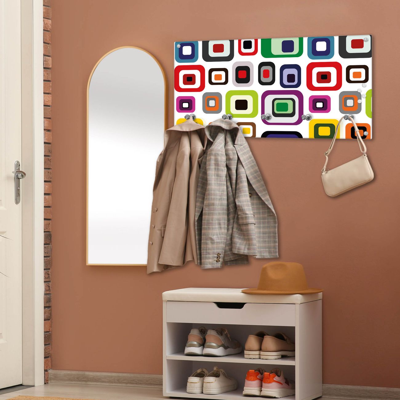 Wandgarderobe Glas 80x40cm Motiv Retro 2