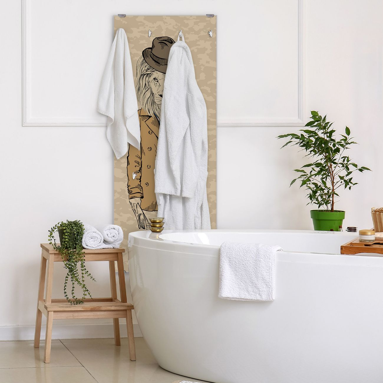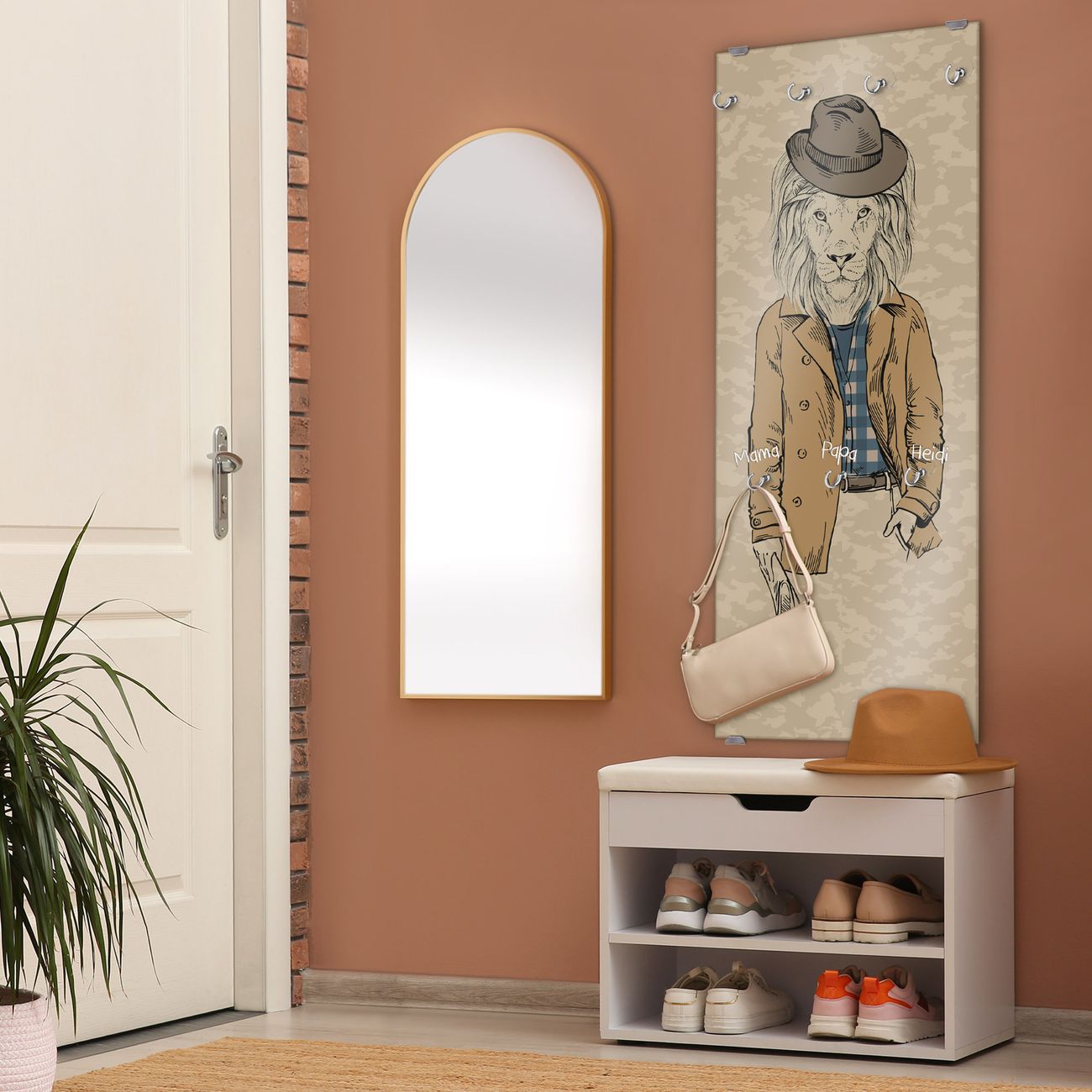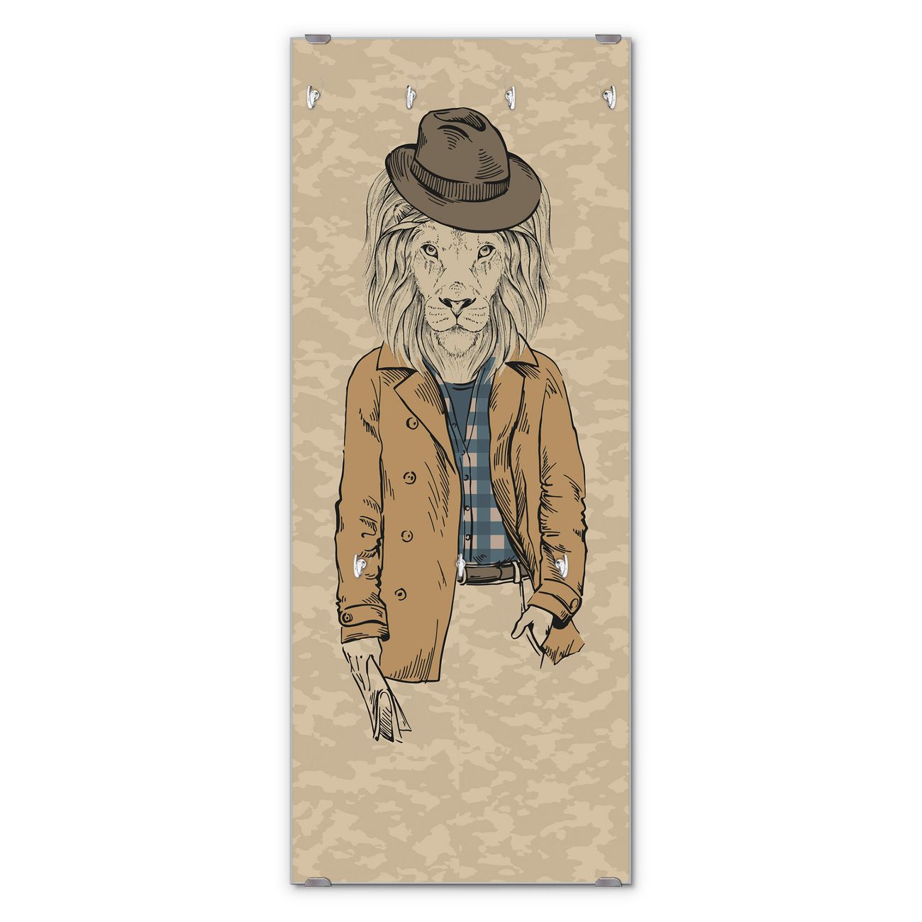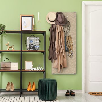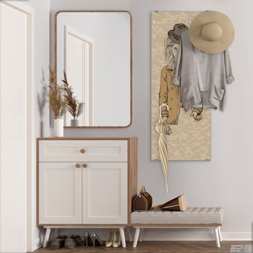 FUNKTION: Die banjado Wandgarderobe mit Motiv Retro Style ist Ihr täglicher Begleiter. Zuverlässig hängen hier Ihre Jacken und Mäntel griffbereit. Das Echtglas ist Ihr Paneel auch beschreibbar und wieder abwischbar. DESIGN: Sie erhalten eine Garderobenleiste aus elegantem Echtglas mit dem Farbbrillanten Motiv Retro Style hinterklebt. Das Design ist zeitlos klassisch, ohne dabei auf Funktionalität zu verzichten. Suchen Sie aus einer Vielzahl von Motiven das für Ihre Einrichtung Passende aus. DETAILS: Die Flurgarderobe besteht aus 4mm gehärtetem Sicherheitsglas. Sie ist 50cm breit, 125cm hoch und 6cm tief. Die Garderobenhaken zur Selbstmontage präsentieren sich in Edelstahl-Optik, ebenso die Abstandshalter für die Wandmontage. Ihre neue Garderobe ist sofort einsatzbereit. NUTZEN: Ihre neue Garderobe hält nicht nur zuverlässig Ihre Kleidung, sie ist auch optisch ein Blickfang. Durch das Glas können Sie an der Garderobe mit wasserlöslichen Kreidestiften oder Whiteboard-Markern auch Nachrichten hinterlassen. BANJADO: Wir sind ein kleines kreatives Team aus Sachsen und entwickeln Produkte die Design und Funktionalität verbinden sollen. Viel Freude mit Ihrer neuen Garderobe wünscht das banjado-Team!