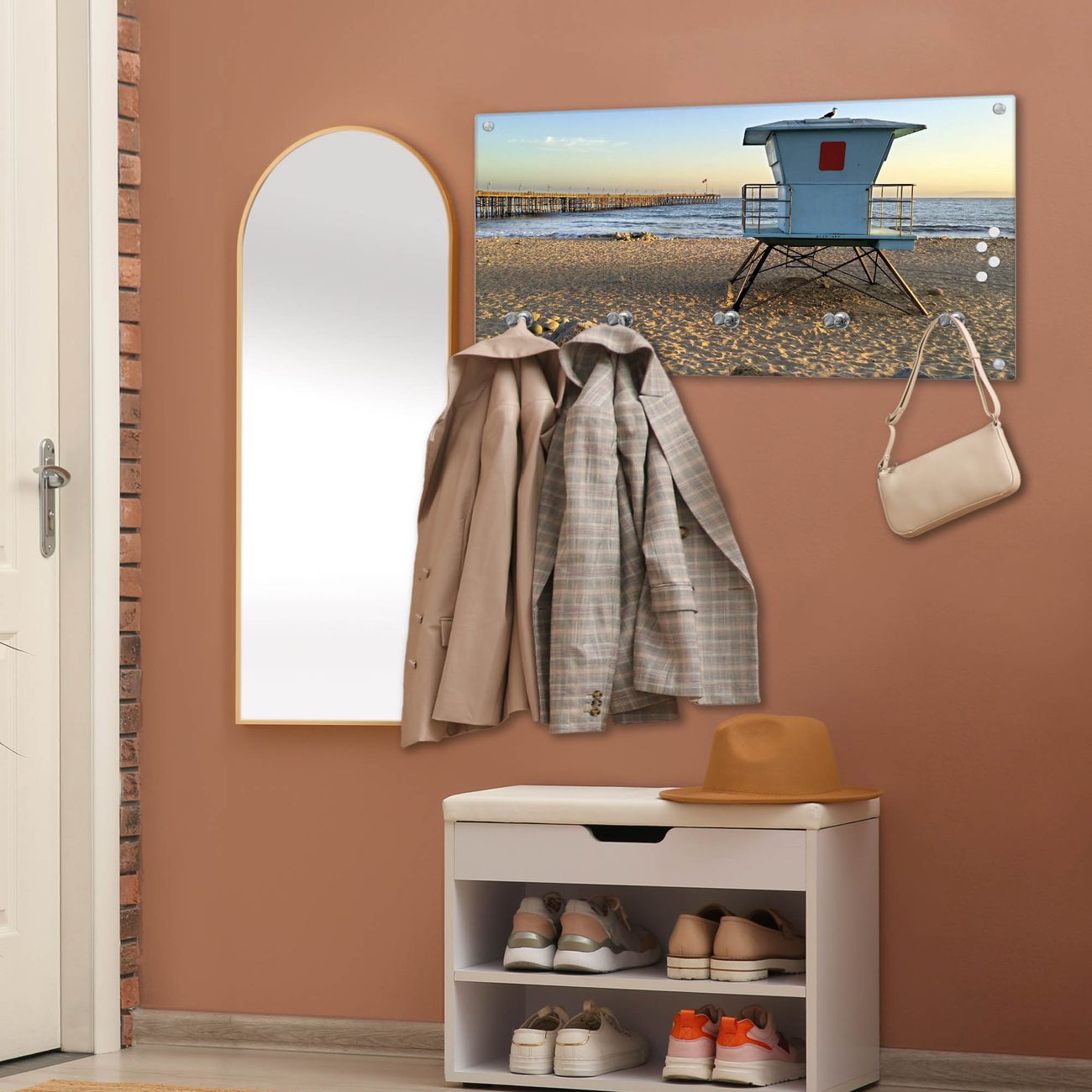 Wandgarderobe Glas 80x40cm Motiv Rettungsturm