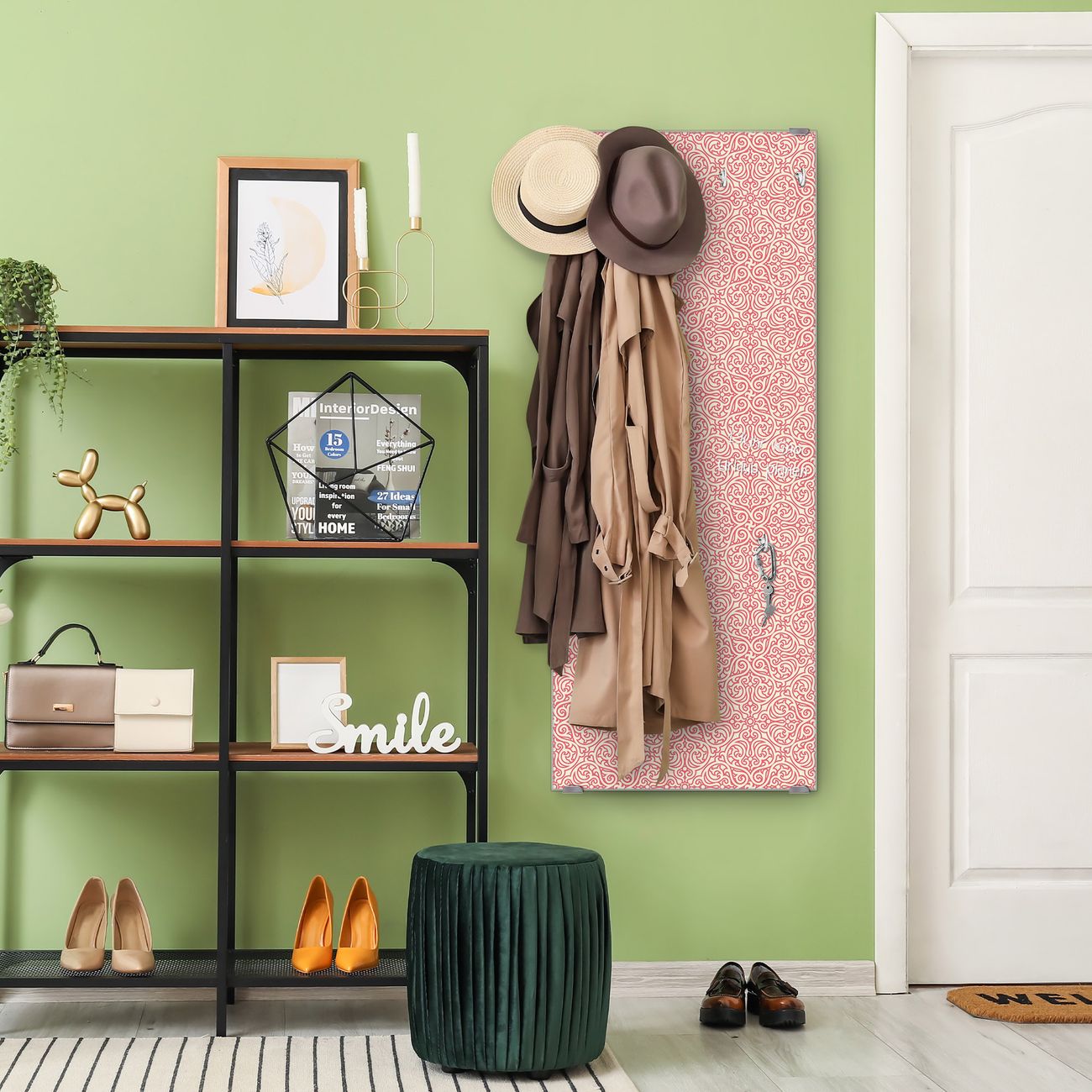 FUNKTION: Die banjado Wandgarderobe mit Motiv Rosa Arabesque ist Ihr täglicher Begleiter. Zuverlässig hängen hier Ihre Jacken und Mäntel griffbereit. Das Echtglas ist Ihr Paneel auch beschreibbar und wieder abwischbar. DESIGN: Sie erhalten eine Garderobenleiste aus elegantem Echtglas mit dem Farbbrillanten Motiv Rosa Arabesque hinterklebt. Das Design ist zeitlos klassisch, ohne dabei auf Funktionalität zu verzichten. Suchen Sie aus einer Vielzahl von Motiven das für Ihre Einrichtung Passende aus. DETAILS: Die Flurgarderobe besteht aus 4mm gehärtetem Sicherheitsglas. Sie ist 50cm breit, 125cm hoch und 6cm tief. Die Garderobenhaken zur Selbstmontage präsentieren sich in Edelstahl-Optik, ebenso die Abstandshalter für die Wandmontage. Ihre neue Garderobe ist sofort einsatzbereit. NUTZEN: Ihre neue Garderobe hält nicht nur zuverlässig Ihre Kleidung, sie ist auch optisch ein Blickfang. Durch das Glas können Sie an der Garderobe mit wasserlöslichen Kreidestiften oder Whiteboard-Markern auch Nachrichten hinterlassen. BANJADO: Wir sind ein kleines kreatives Team aus Sachsen und entwickeln Produkte die Design und Funktionalität verbinden sollen. Viel Freude mit Ihrer neuen Garderobe wünscht das banjado-Team!