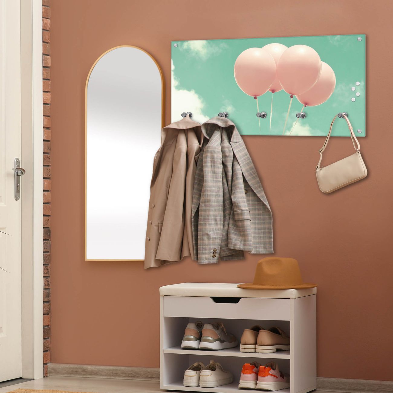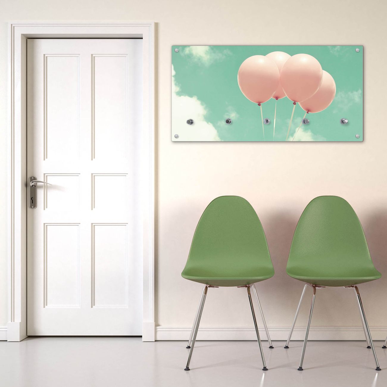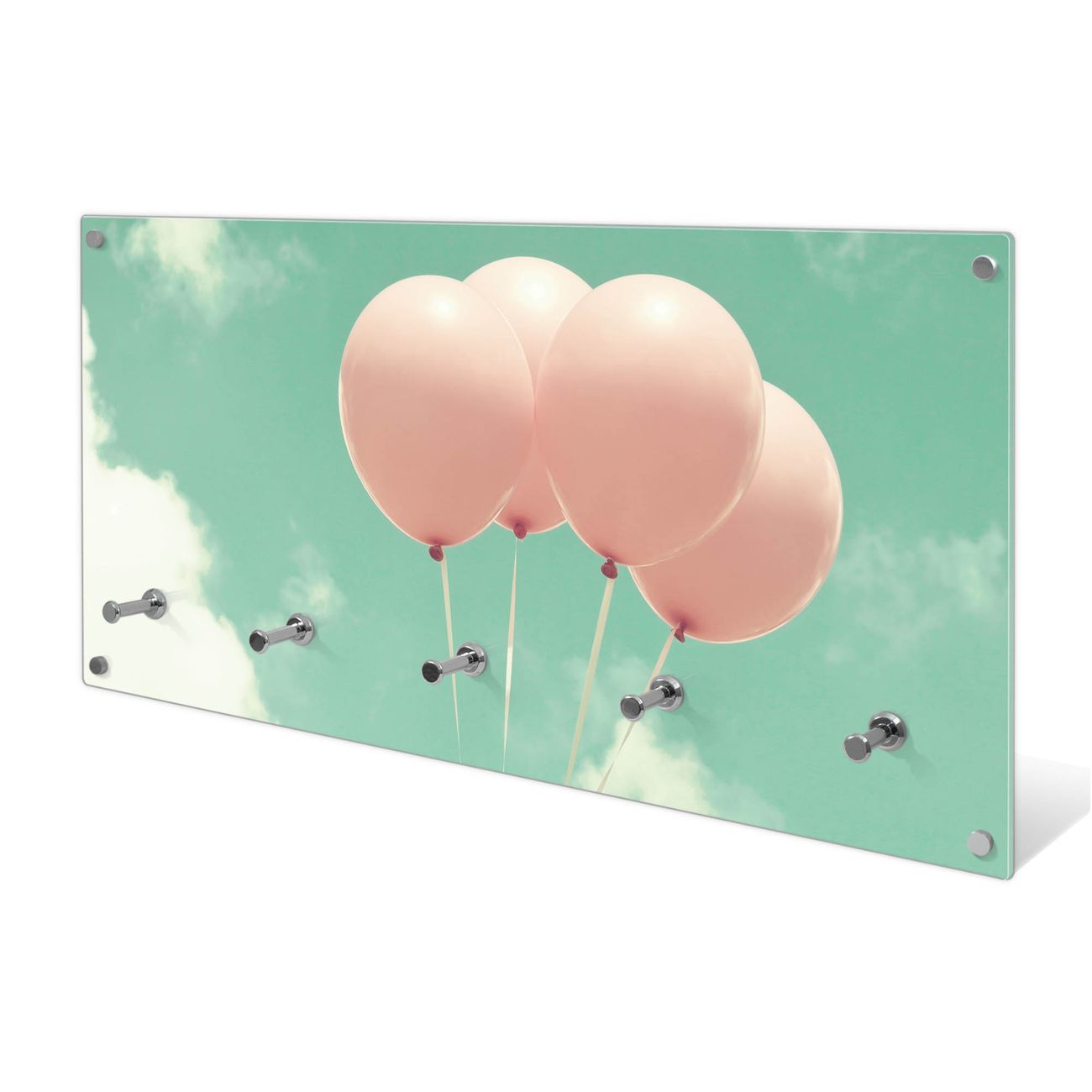 Wandgarderobe Glas 80x40cm Motiv Rosa Ballons