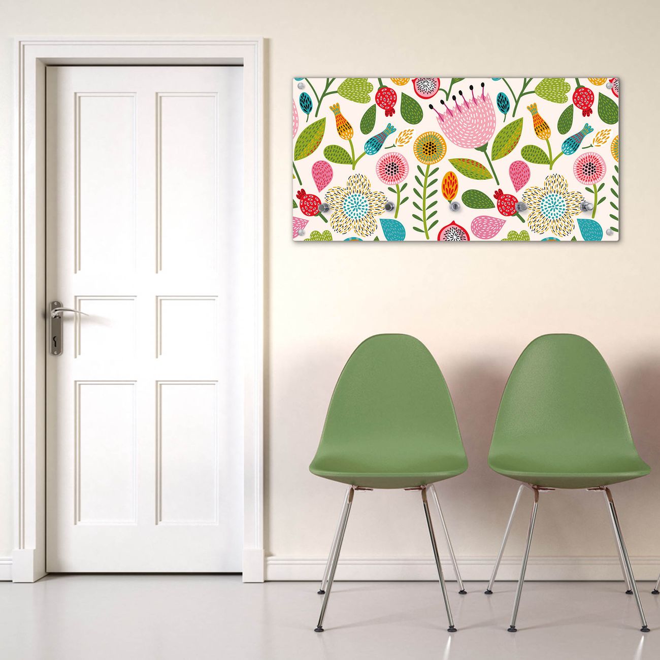 Bitte beachten Sie, dass an dieser Garderobe nur starke Neodym-Magnete halten! FUNKTION: Die banjado Wandgarderobe mit Motiv Rosa Kelch Hell ist Ihr täglicher Begleiter. Zuverlässig hängen hier Ihre Jacken und Mäntel griffbereit. Gleichzeitig ist die Design Garderobe magnetisch, Sie können Notizen anheften und durch das Echtglas ist Ihr Paneel auch beschreibbar und wieder abwischbar. DESIGN: Sie erhalten eine Garderobenleiste aus elegantem Echtglas mit dem Farbbrillanten Motiv Rosa Kelch Hell hinterklebt. Das Design ist zeitlos klassisch, ohne dabei auf Funktionalität zu verzichten. Suchen Sie aus einer Vielzahl von Motiven das für Ihre Einrichtung Passende aus. DETAILS: Die Flurgarderobe besteht aus 4mm gehärtetem Sicherheitsglas. Sie ist 80cm breit, 40cm hoch und 6cm tief. Die Garderobenhaken zur Selbstmontage präsentieren sich in Edelstahl-Optik, ebenso die Abstandshalter für die Wandmontage. Ihre neue Garderobe ist sofort einsatzbereit. NUTZEN: Ihre neue Garderobe hält nicht nur zuverlässig Ihre Kleidung, sie ist auch optisch ein Blickfang. Durch die magnetische Wirkung können Sie mit 4 beigefügten extrastarken Neodym-Magneten Notizen anheften und mit wasserlöslichen Kreidestiften oder Whiteboard-Markern auch Nachrichten hinterlassen. BANJADO: Wir sind ein kleines kreatives Team aus Sachsen und entwickeln Produkte die Design und Funktionalität verbinden sollen. Viel Freude mit Ihrer neuen Garderobe wünscht das banjado-Team!