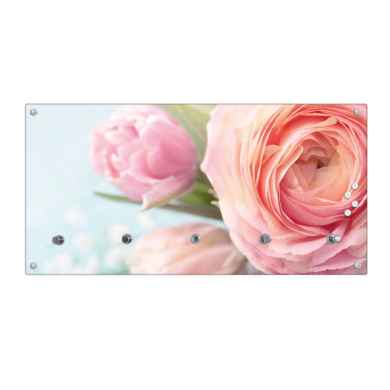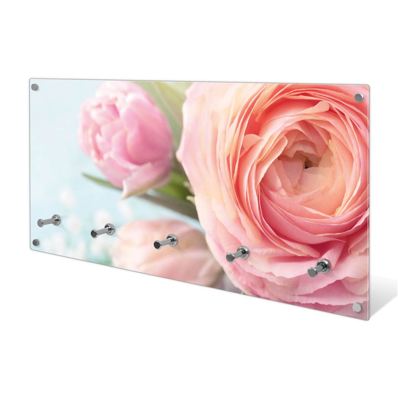 Wandgarderobe Glas 80x40cm Motiv Rosa Tulpe