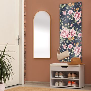 Flurgarderobe Glas 50x125cm Motiv Rosen Auf Anthrazit