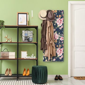 FUNKTION: Die banjado Wandgarderobe mit Motiv Rosen Auf Anthrazit ist Ihr täglicher Begleiter. Zuverlässig hängen hier Ihre Jacken und Mäntel griffbereit. Das Echtglas ist Ihr Paneel auch beschreibbar und wieder abwischbar. DESIGN: Sie erhalten eine Garderobenleiste aus elegantem Echtglas mit dem Farbbrillanten Motiv Rosen Auf Anthrazit hinterklebt. Das Design ist zeitlos klassisch, ohne dabei auf Funktionalität zu verzichten. Suchen Sie aus einer Vielzahl von Motiven das für Ihre Einrichtung Passende aus. DETAILS: Die Flurgarderobe besteht aus 4mm gehärtetem Sicherheitsglas. Sie ist 50cm breit, 125cm hoch und 6cm tief. Die Garderobenhaken zur Selbstmontage präsentieren sich in Edelstahl-Optik, ebenso die Abstandshalter für die Wandmontage. Ihre neue Garderobe ist sofort einsatzbereit. NUTZEN: Ihre neue Garderobe hält nicht nur zuverlässig Ihre Kleidung, sie ist auch optisch ein Blickfang. Durch das Glas können Sie an der Garderobe mit wasserlöslichen Kreidestiften oder Whiteboard-Markern auch Nachrichten hinterlassen. BANJADO: Wir sind ein kleines kreatives Team aus Sachsen und entwickeln Produkte die Design und Funktionalität verbinden sollen. Viel Freude mit Ihrer neuen Garderobe wünscht das banjado-Team!