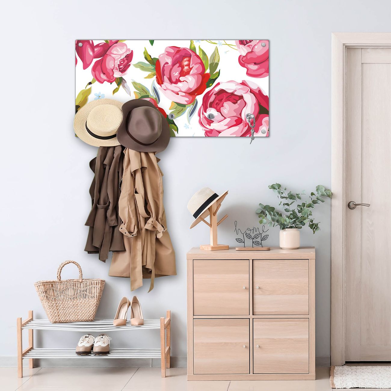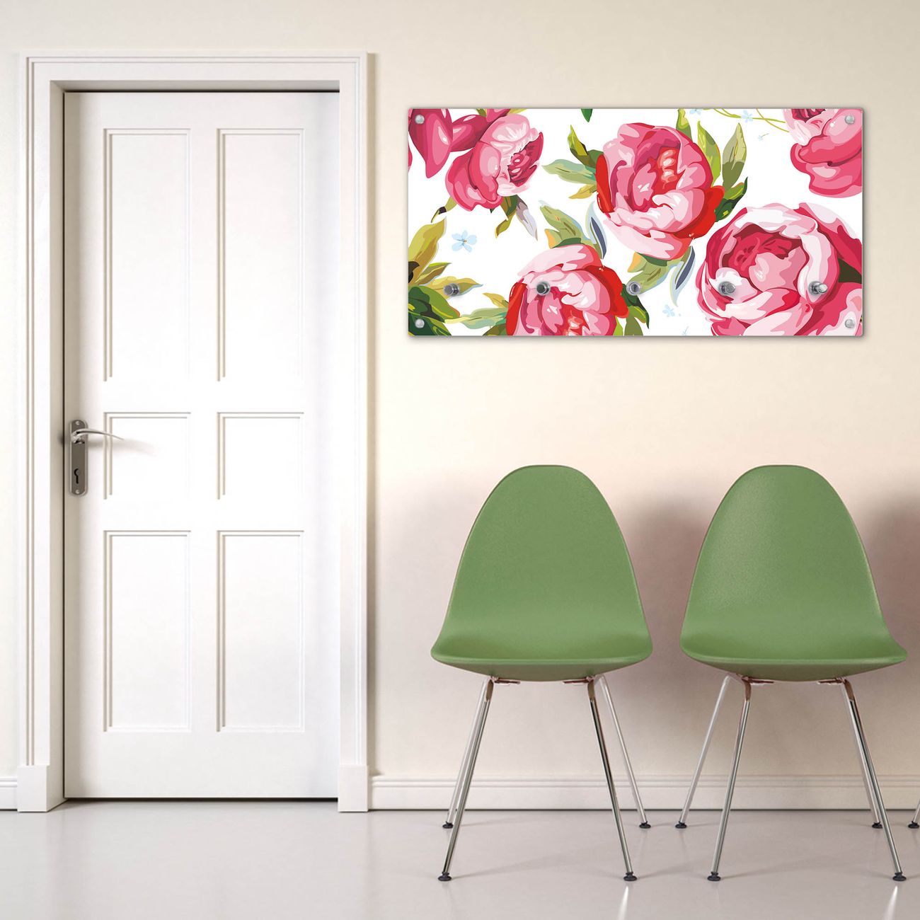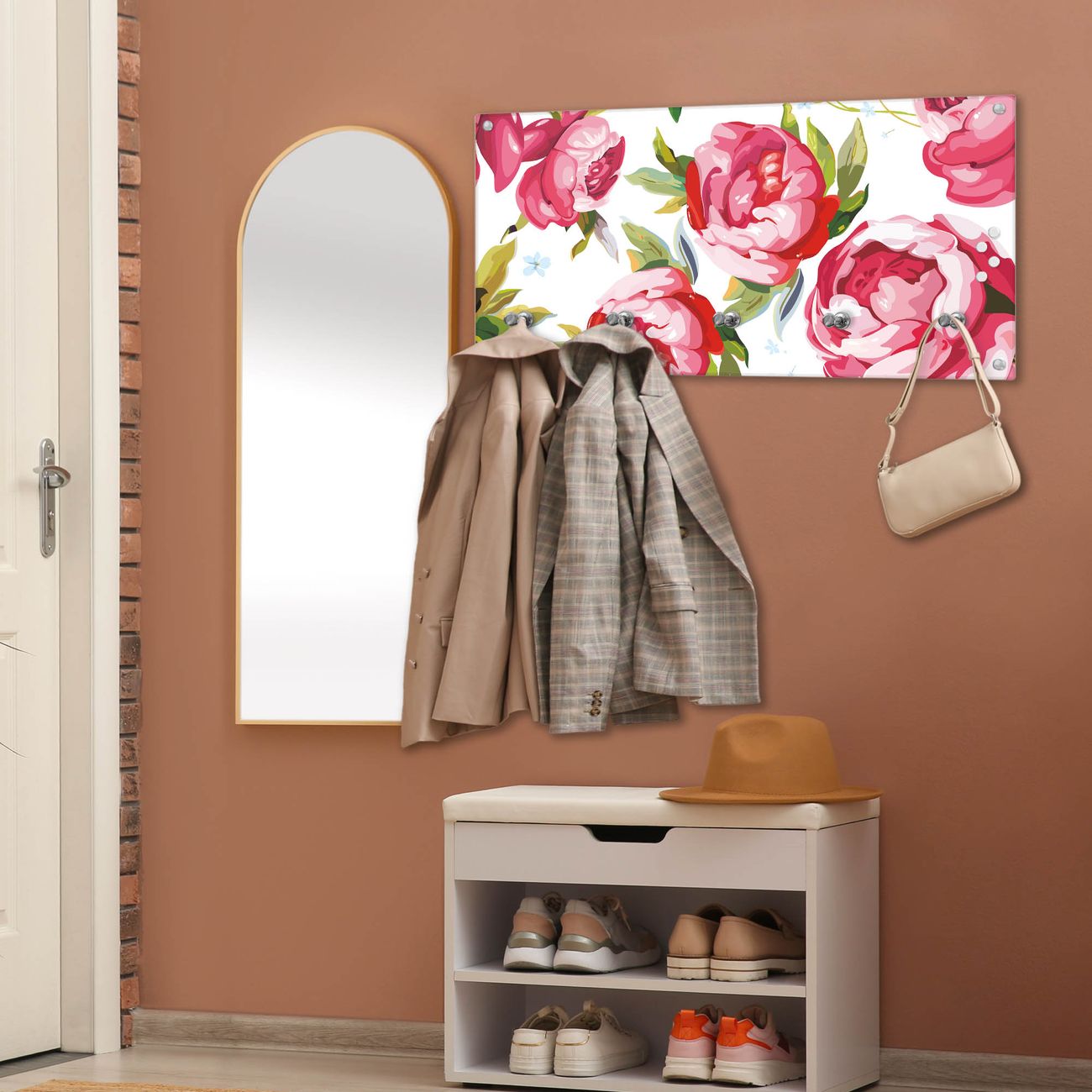 Wandgarderobe Glas 80x40cm Motiv Rosen Rustikal