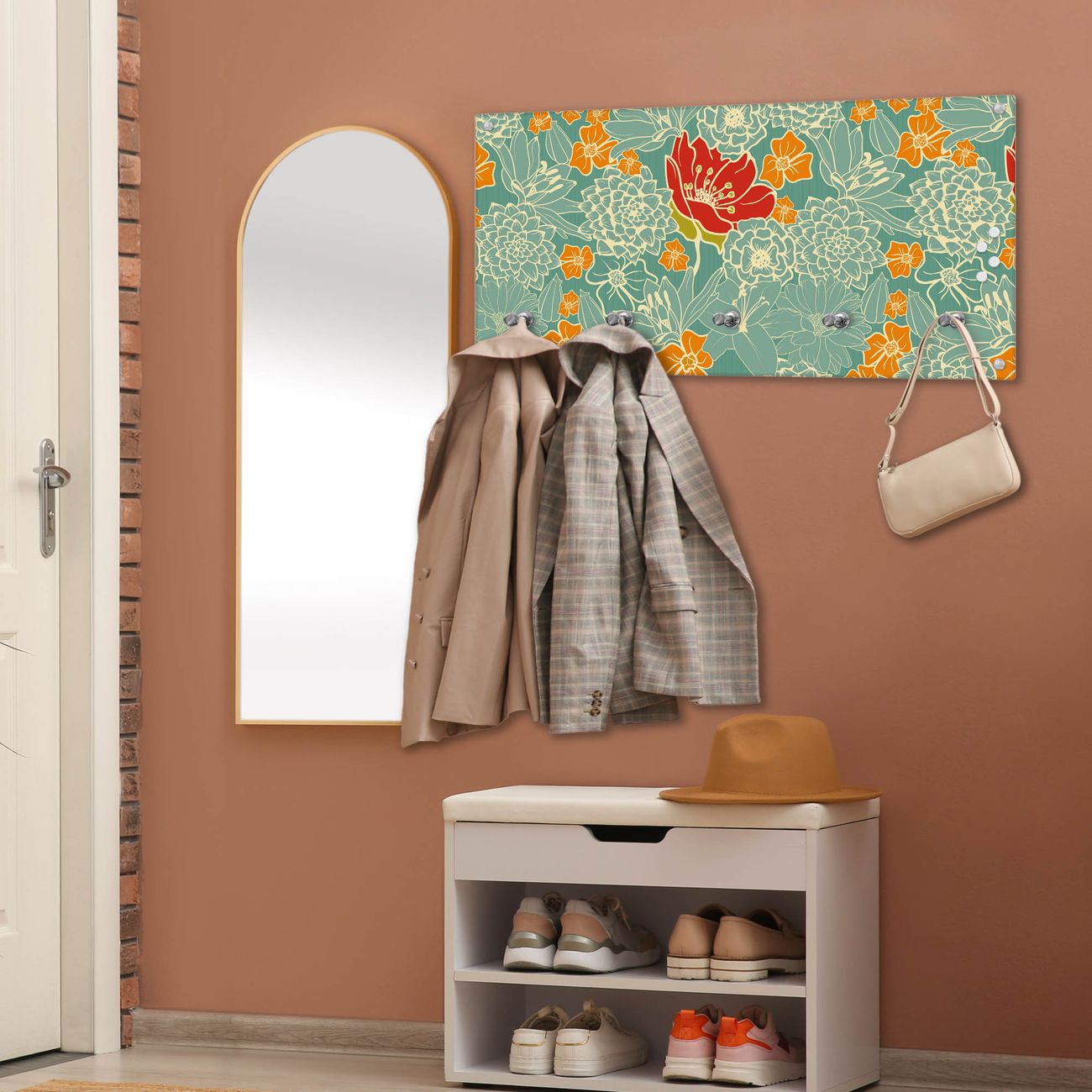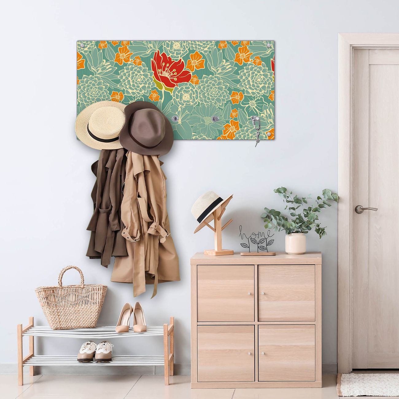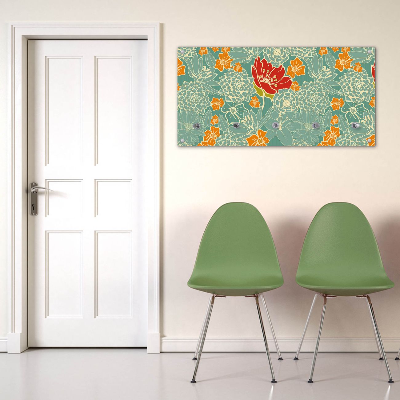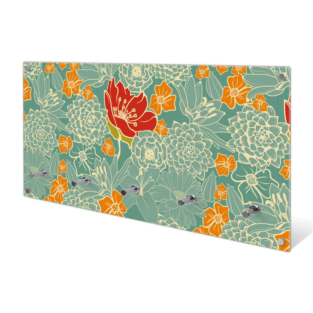 Wandgarderobe Glas 80x40cm Motiv Rote Blumen
