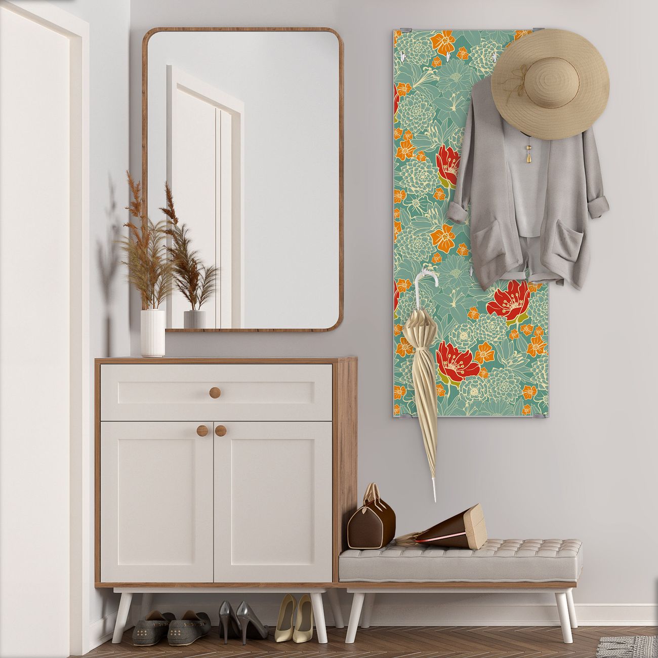 Flurgarderobe Glas 50x125cm Motiv Rote Blumen