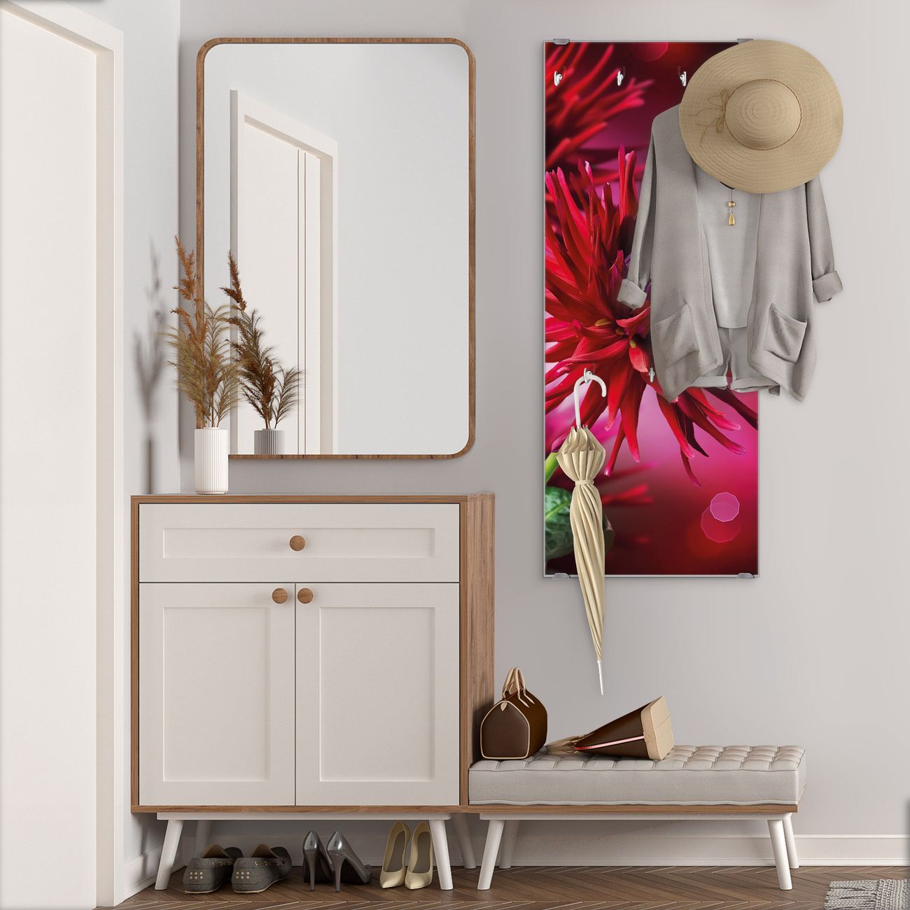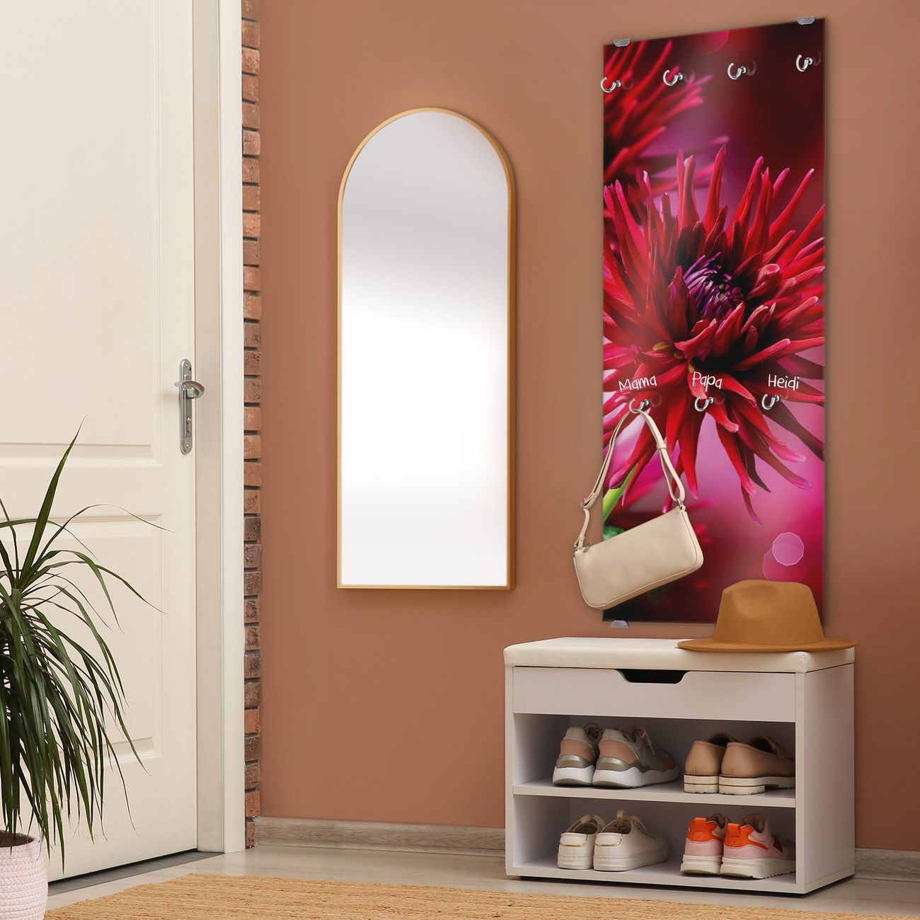 Flurgarderobe Glas 50x125cm Motiv Rote Dahlien