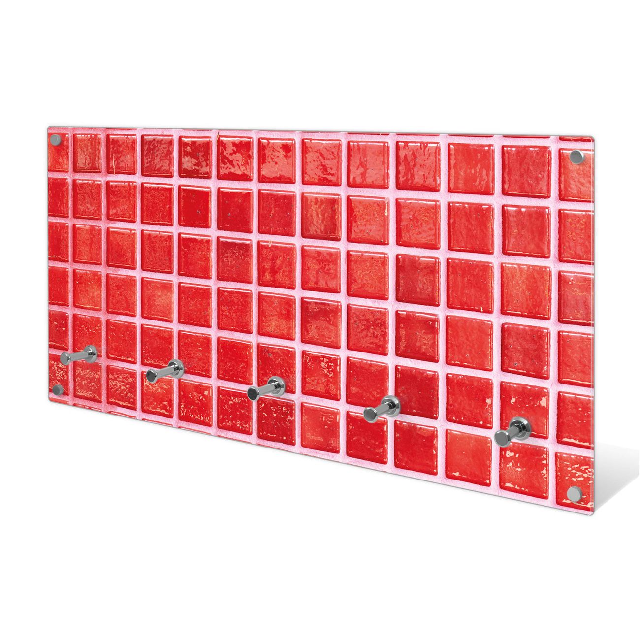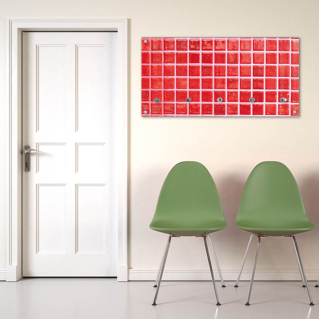 Wandgarderobe Glas 80x40cm Motiv Rote Kacheln
