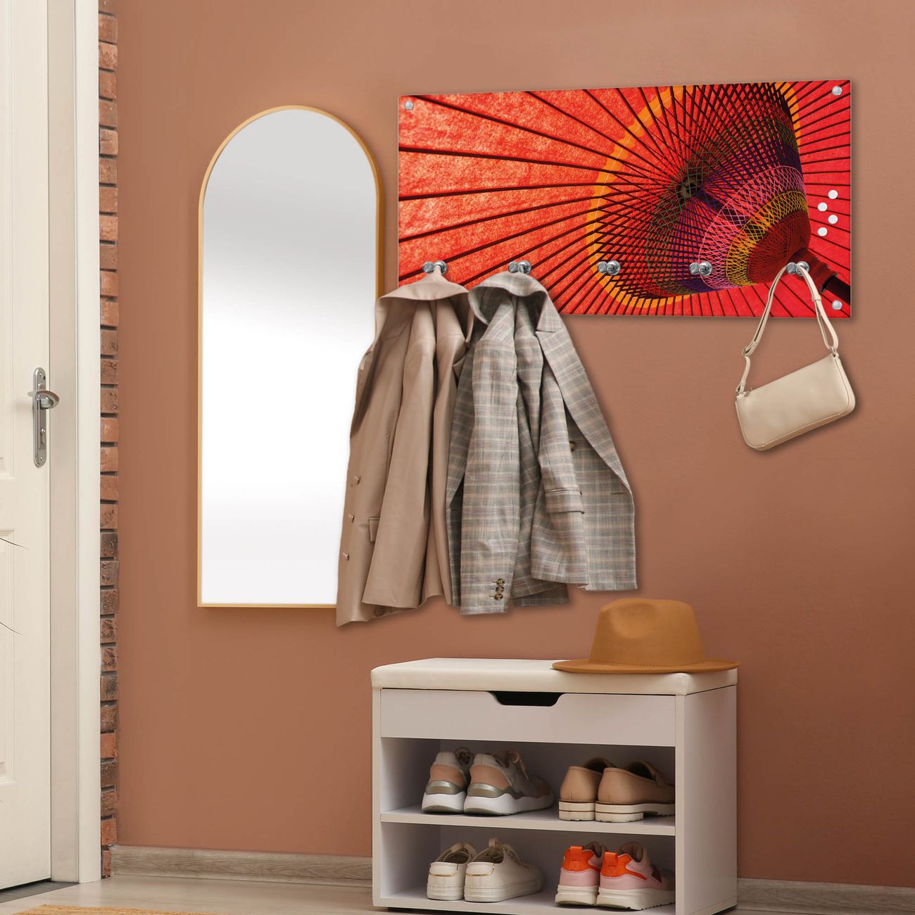 Wandgarderobe Glas 80x40cm Motiv Roter Schirm