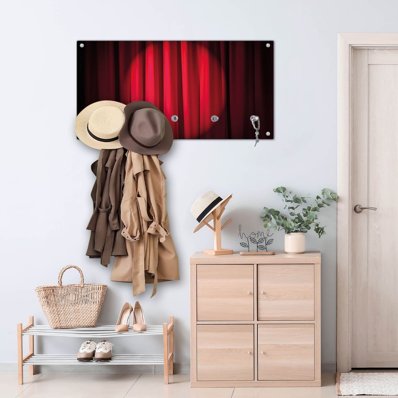 Wandgarderobe Glas 80x40cm Motiv Roter Vorhang