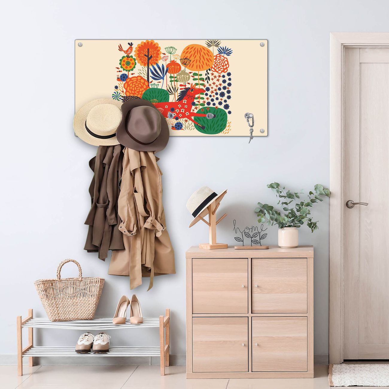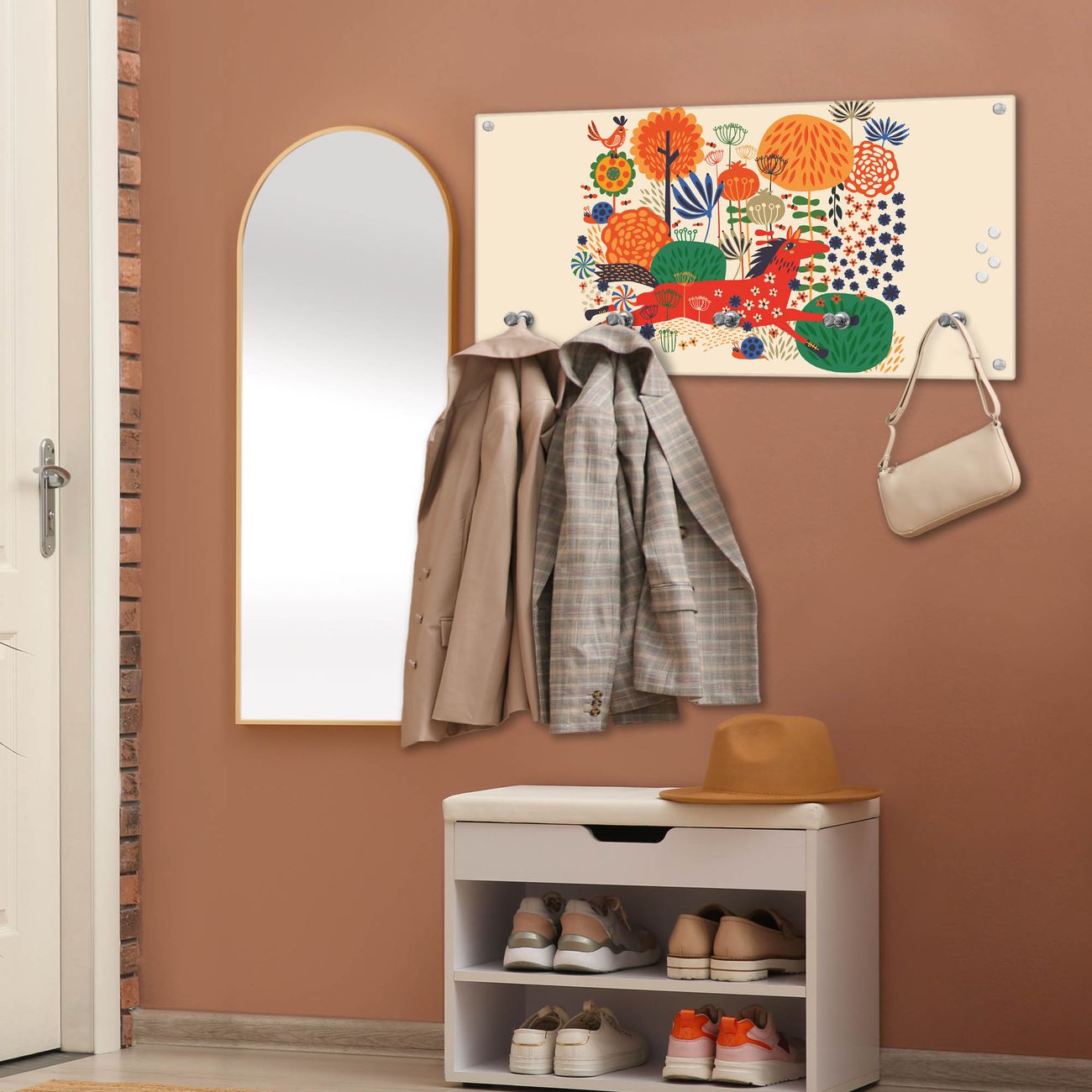 Wandgarderobe Glas 80x40cm Motiv Rotes Pferd