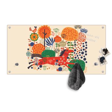 Bitte beachten Sie, dass an dieser Garderobe nur starke Neodym-Magnete halten! FUNKTION: Die banjado Wandgarderobe mit Motiv Rotes Pferd ist Ihr täglicher Begleiter. Zuverlässig hängen hier Ihre Jacken und Mäntel griffbereit. Gleichzeitig ist die Design Garderobe magnetisch, Sie können Notizen anheften und durch das Echtglas ist Ihr Paneel auch beschreibbar und wieder abwischbar. DESIGN: Sie erhalten eine Garderobenleiste aus elegantem Echtglas mit dem Farbbrillanten Motiv Rotes Pferd hinterklebt. Das Design ist zeitlos klassisch, ohne dabei auf Funktionalität zu verzichten. Suchen Sie aus einer Vielzahl von Motiven das für Ihre Einrichtung Passende aus. DETAILS: Die Flurgarderobe besteht aus 4mm gehärtetem Sicherheitsglas. Sie ist 80cm breit, 40cm hoch und 6cm tief. Die Garderobenhaken zur Selbstmontage präsentieren sich in Edelstahl-Optik, ebenso die Abstandshalter für die Wandmontage. Ihre neue Garderobe ist sofort einsatzbereit. NUTZEN: Ihre neue Garderobe hält nicht nur zuverlässig Ihre Kleidung, sie ist auch optisch ein Blickfang. Durch die magnetische Wirkung können Sie mit 4 beigefügten extrastarken Neodym-Magneten Notizen anheften und mit wasserlöslichen Kreidestiften oder Whiteboard-Markern auch Nachrichten hinterlassen. BANJADO: Wir sind ein kleines kreatives Team aus Sachsen und entwickeln Produkte die Design und Funktionalität verbinden sollen. Viel Freude mit Ihrer neuen Garderobe wünscht das banjado-Team!