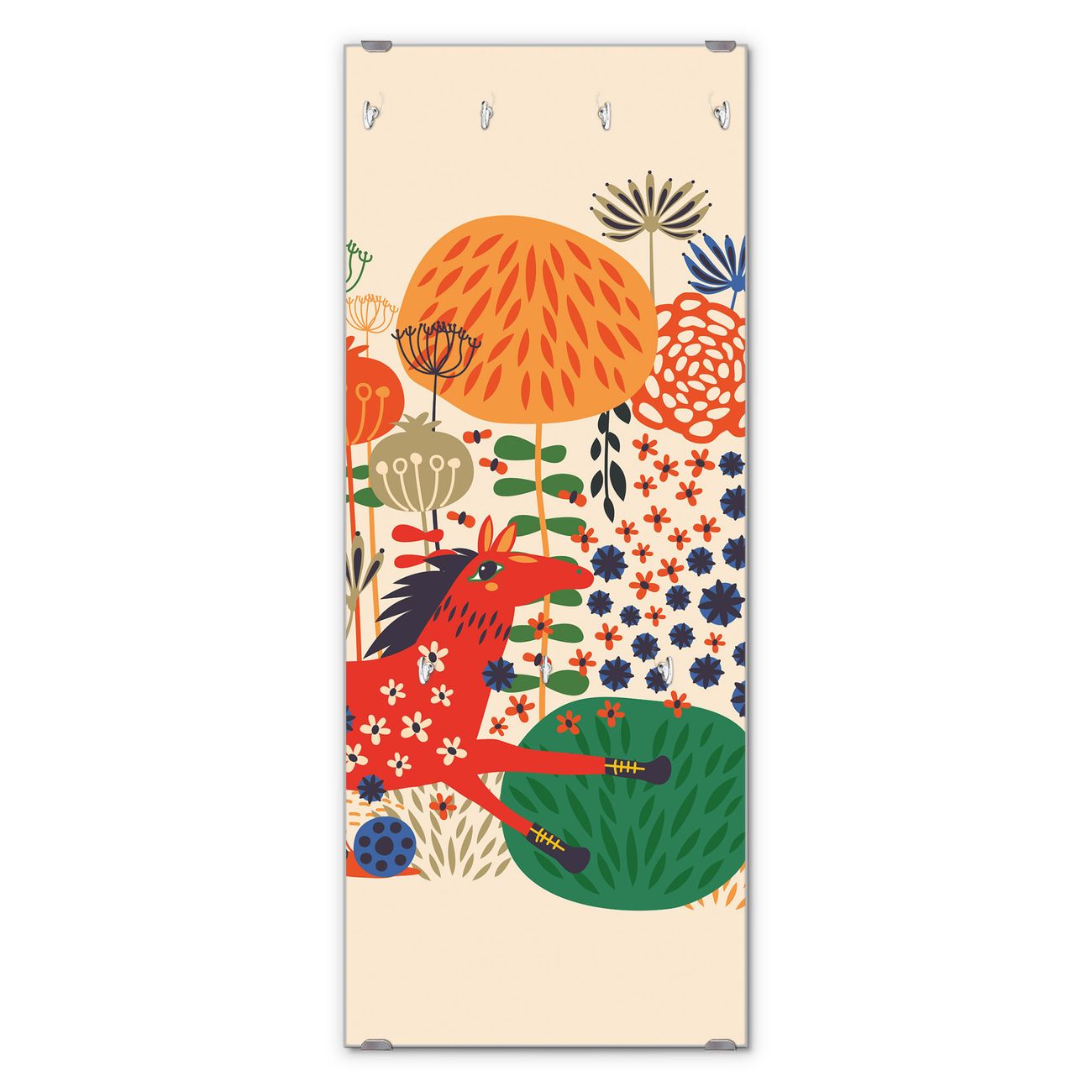 Flurgarderobe Glas 50x125cm Motiv Rotes Pferd