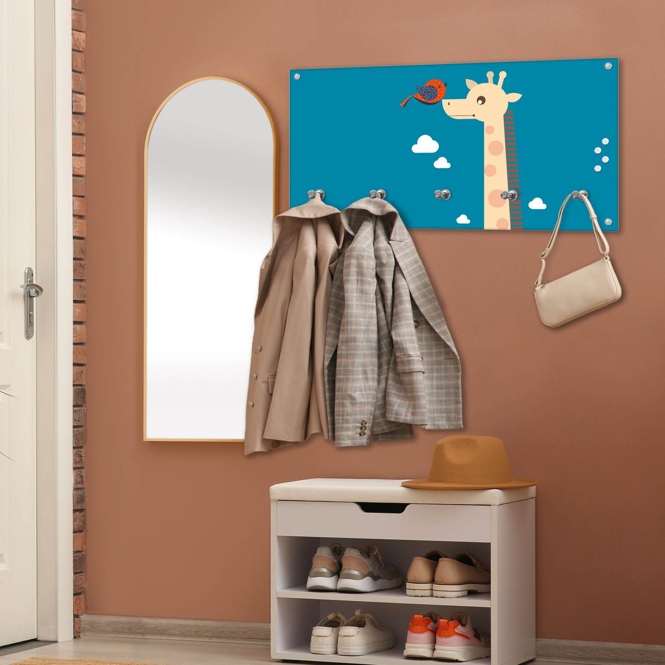 Wandgarderobe Glas 80x40cm Motiv Sally und Georg