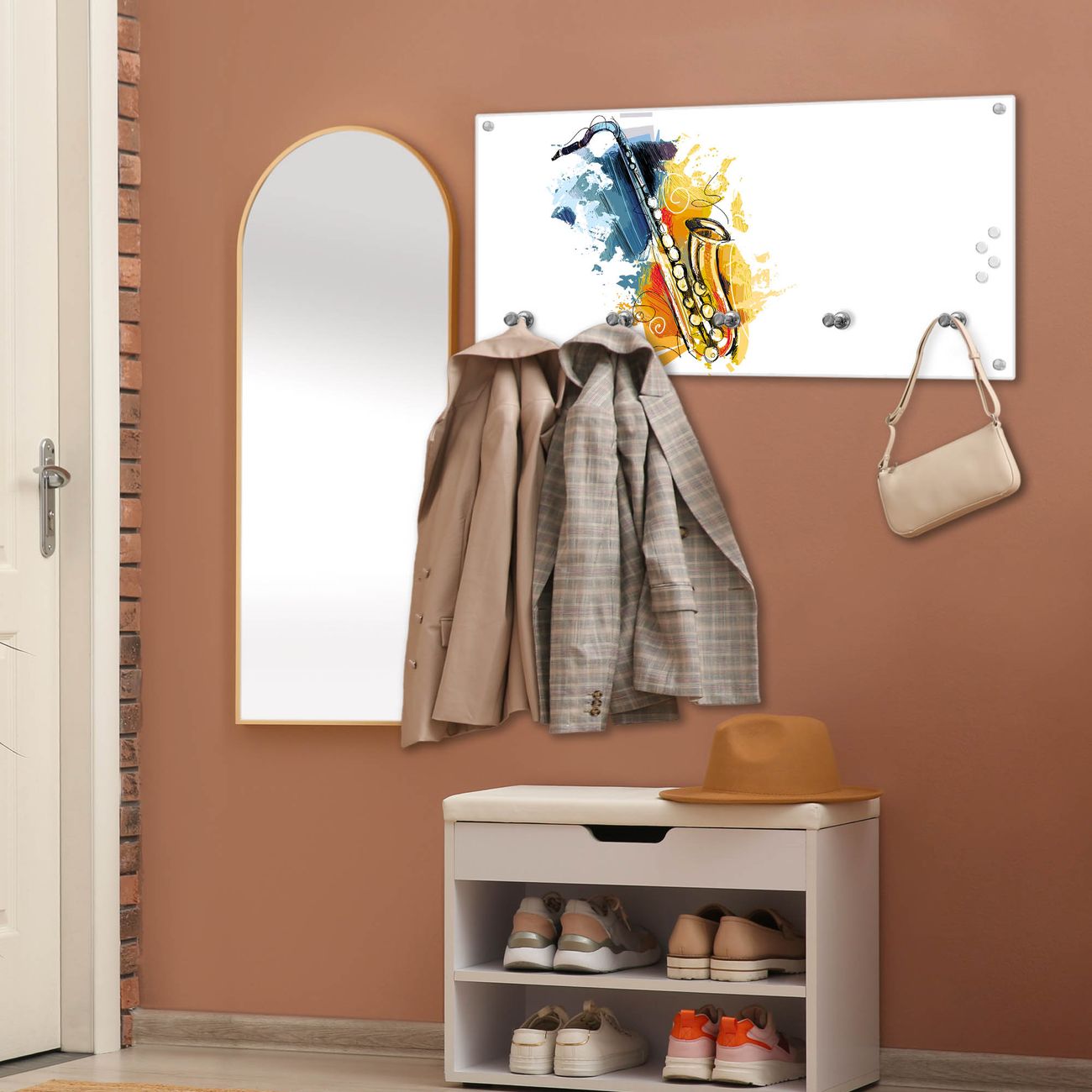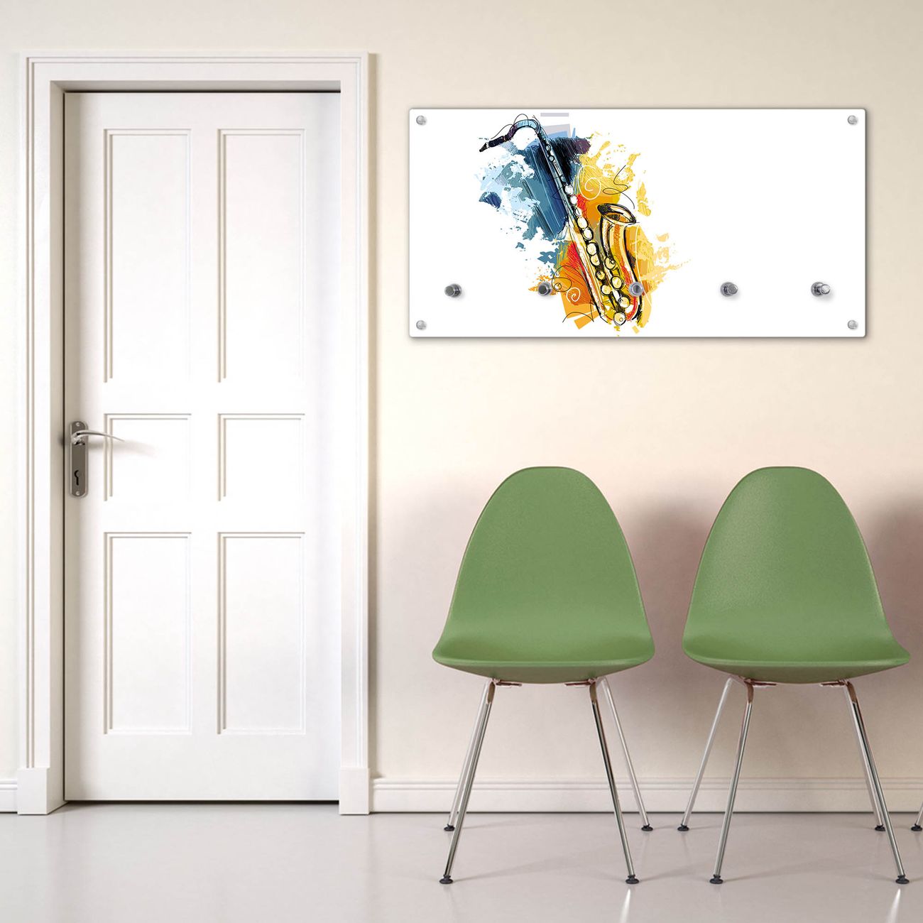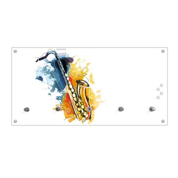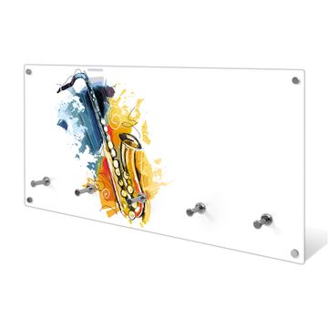 Wandgarderobe Glas 80x40cm Motiv Saxophon