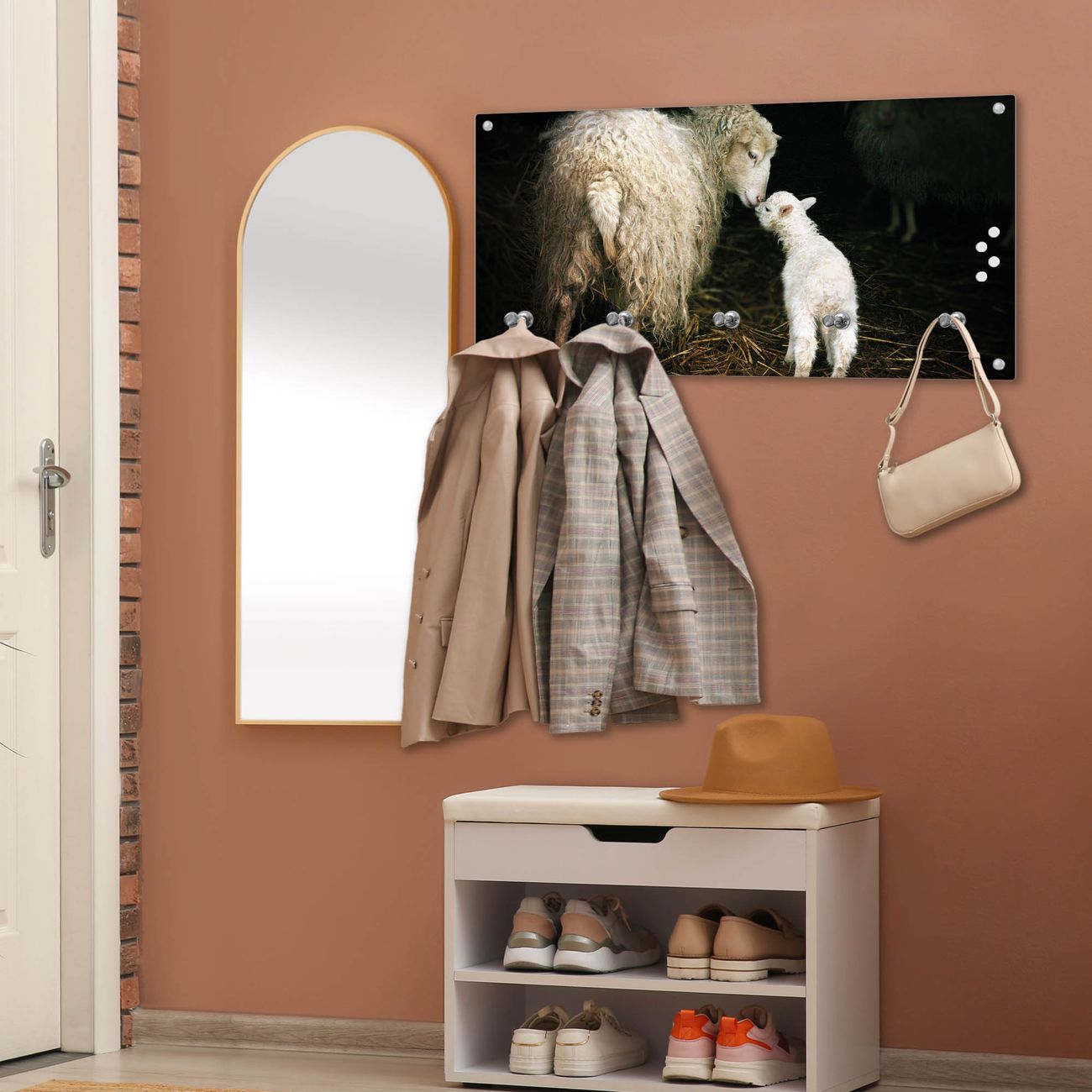 Wandgarderobe Glas 80x40cm Motiv Schaf Und Lamm