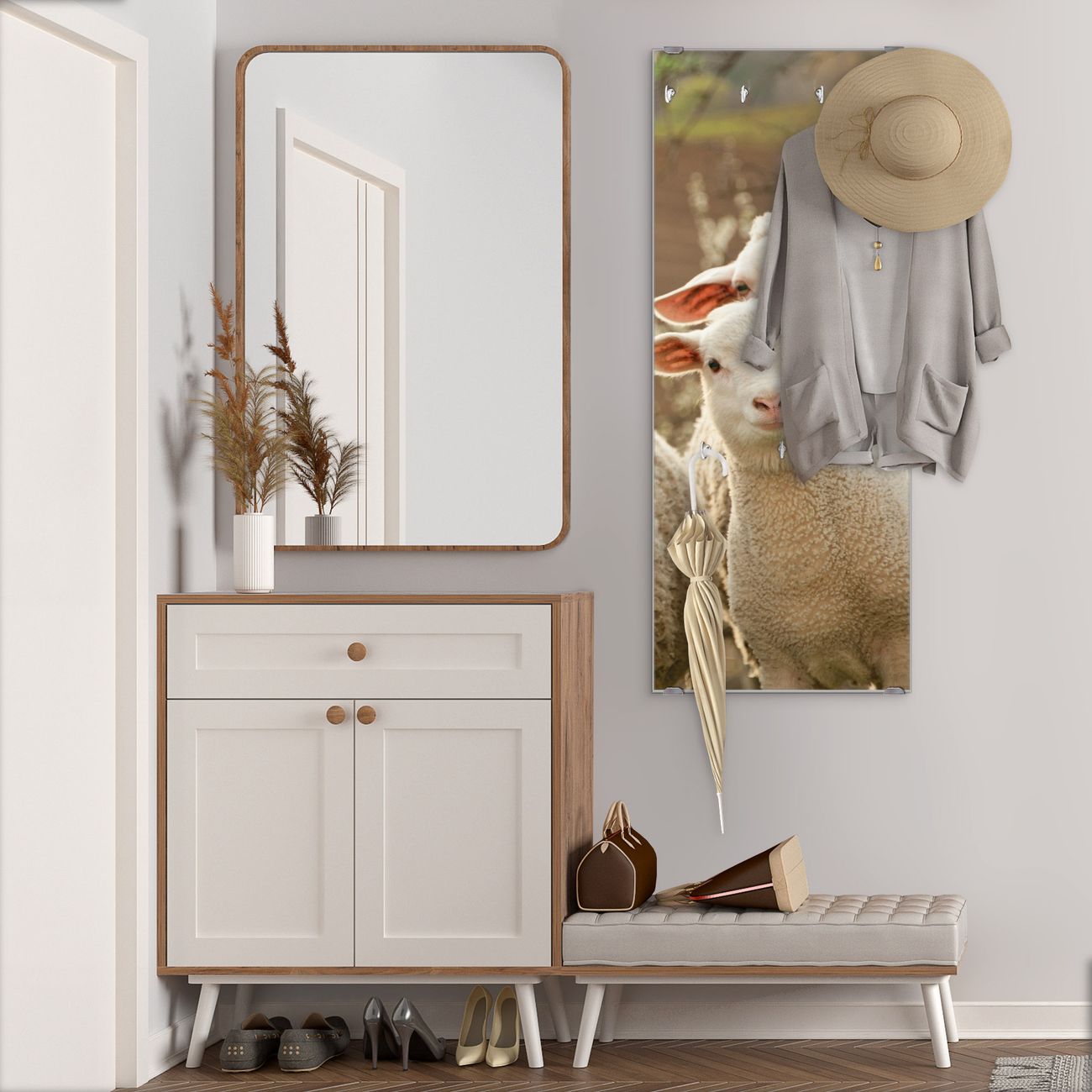 Flurgarderobe Glas 50x125cm Motiv Schaffamilie
