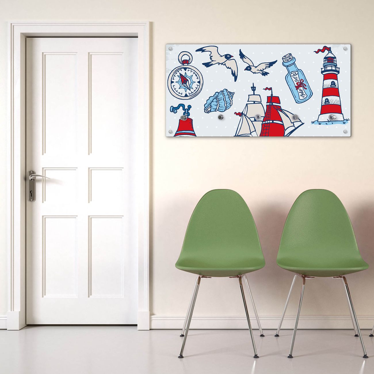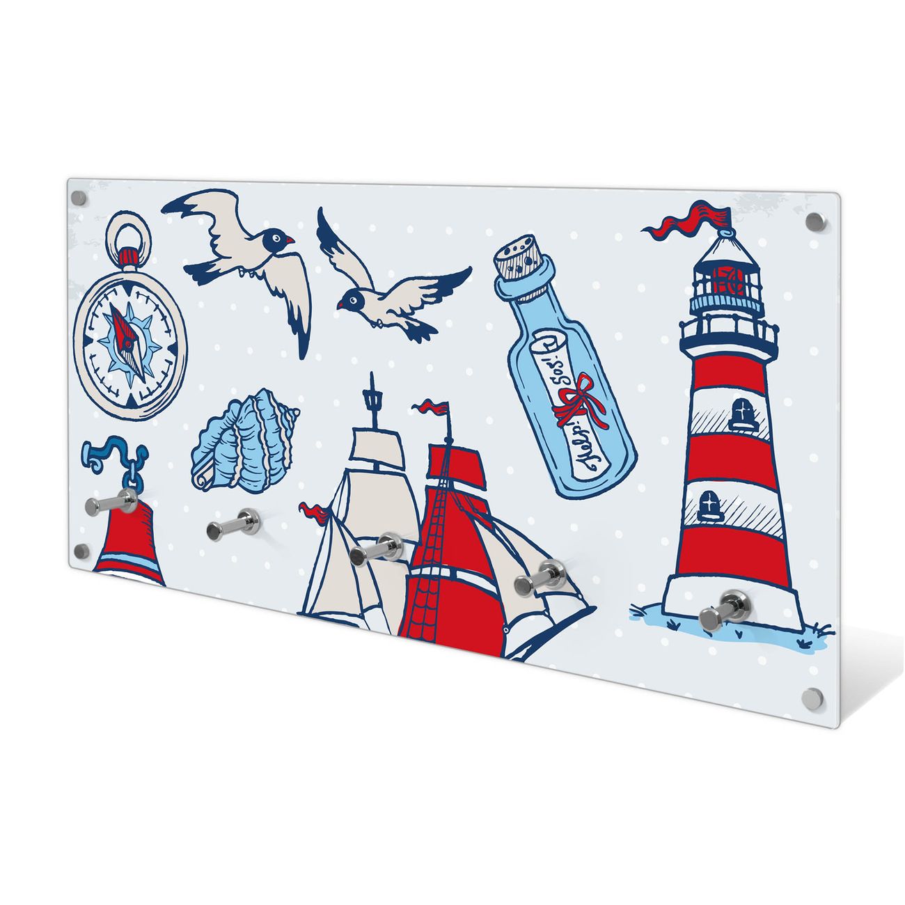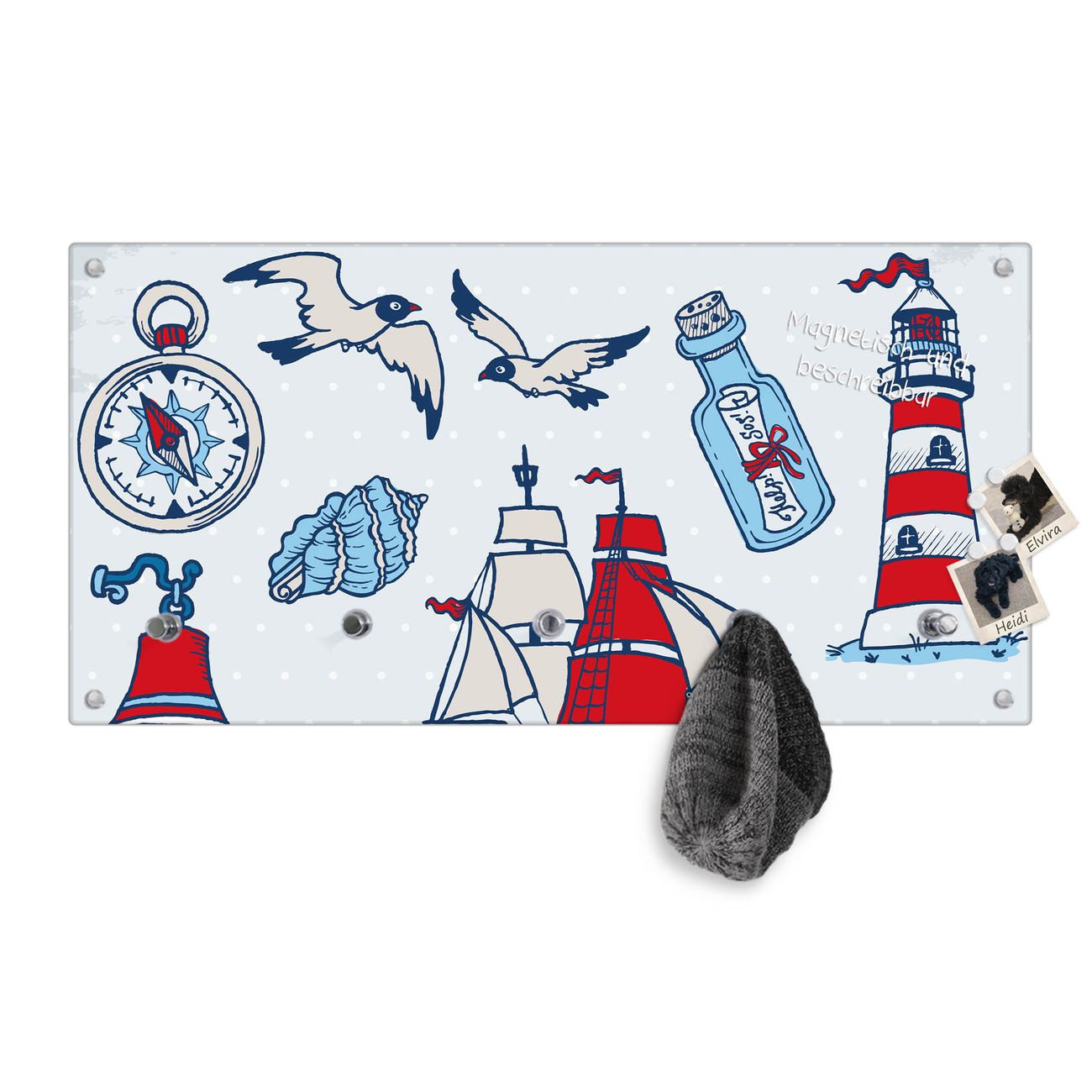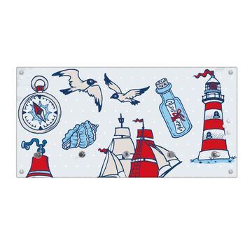 Wandgarderobe Glas 80x40cm Motiv Schiff Ahoj