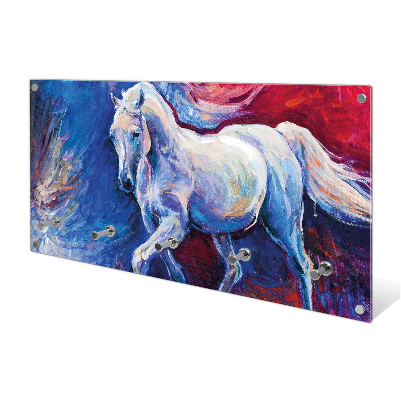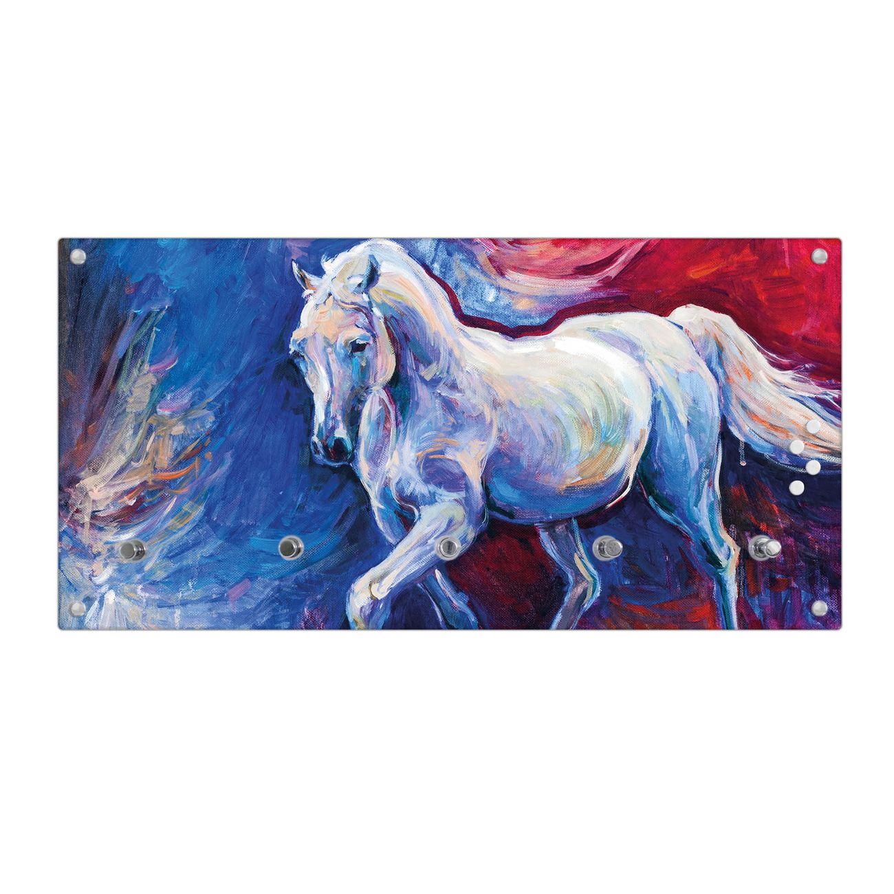 Bitte beachten Sie, dass an dieser Garderobe nur starke Neodym-Magnete halten! FUNKTION: Die banjado Wandgarderobe mit Motiv Schimmel ist Ihr täglicher Begleiter. Zuverlässig hängen hier Ihre Jacken und Mäntel griffbereit. Gleichzeitig ist die Design Garderobe magnetisch, Sie können Notizen anheften und durch das Echtglas ist Ihr Paneel auch beschreibbar und wieder abwischbar. DESIGN: Sie erhalten eine Garderobenleiste aus elegantem Echtglas mit dem Farbbrillanten Motiv Schimmel hinterklebt. Das Design ist zeitlos klassisch, ohne dabei auf Funktionalität zu verzichten. Suchen Sie aus einer Vielzahl von Motiven das für Ihre Einrichtung Passende aus. DETAILS: Die Flurgarderobe besteht aus 4mm gehärtetem Sicherheitsglas. Sie ist 80cm breit, 40cm hoch und 6cm tief. Die Garderobenhaken zur Selbstmontage präsentieren sich in Edelstahl-Optik, ebenso die Abstandshalter für die Wandmontage. Ihre neue Garderobe ist sofort einsatzbereit. NUTZEN: Ihre neue Garderobe hält nicht nur zuverlässig Ihre Kleidung, sie ist auch optisch ein Blickfang. Durch die magnetische Wirkung können Sie mit 4 beigefügten extrastarken Neodym-Magneten Notizen anheften und mit wasserlöslichen Kreidestiften oder Whiteboard-Markern auch Nachrichten hinterlassen. BANJADO: Wir sind ein kleines kreatives Team aus Sachsen und entwickeln Produkte die Design und Funktionalität verbinden sollen. Viel Freude mit Ihrer neuen Garderobe wünscht das banjado-Team!