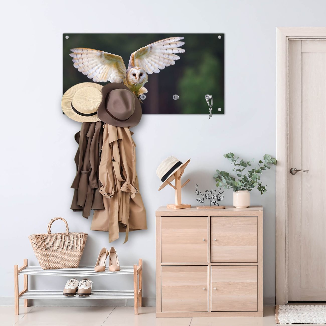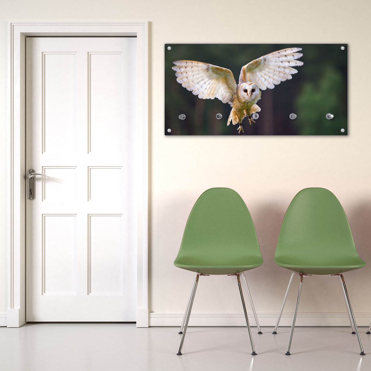 Wandgarderobe Glas 80x40cm Motiv Schleiereule