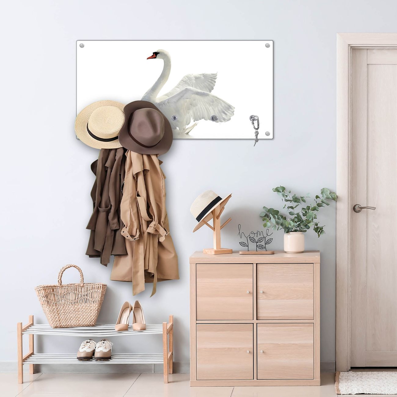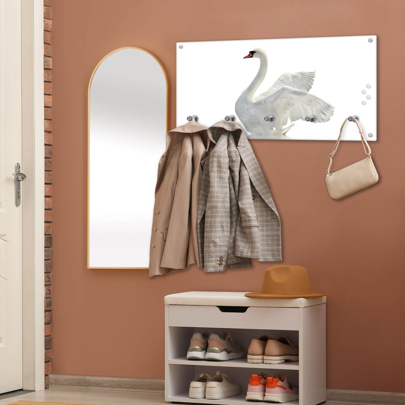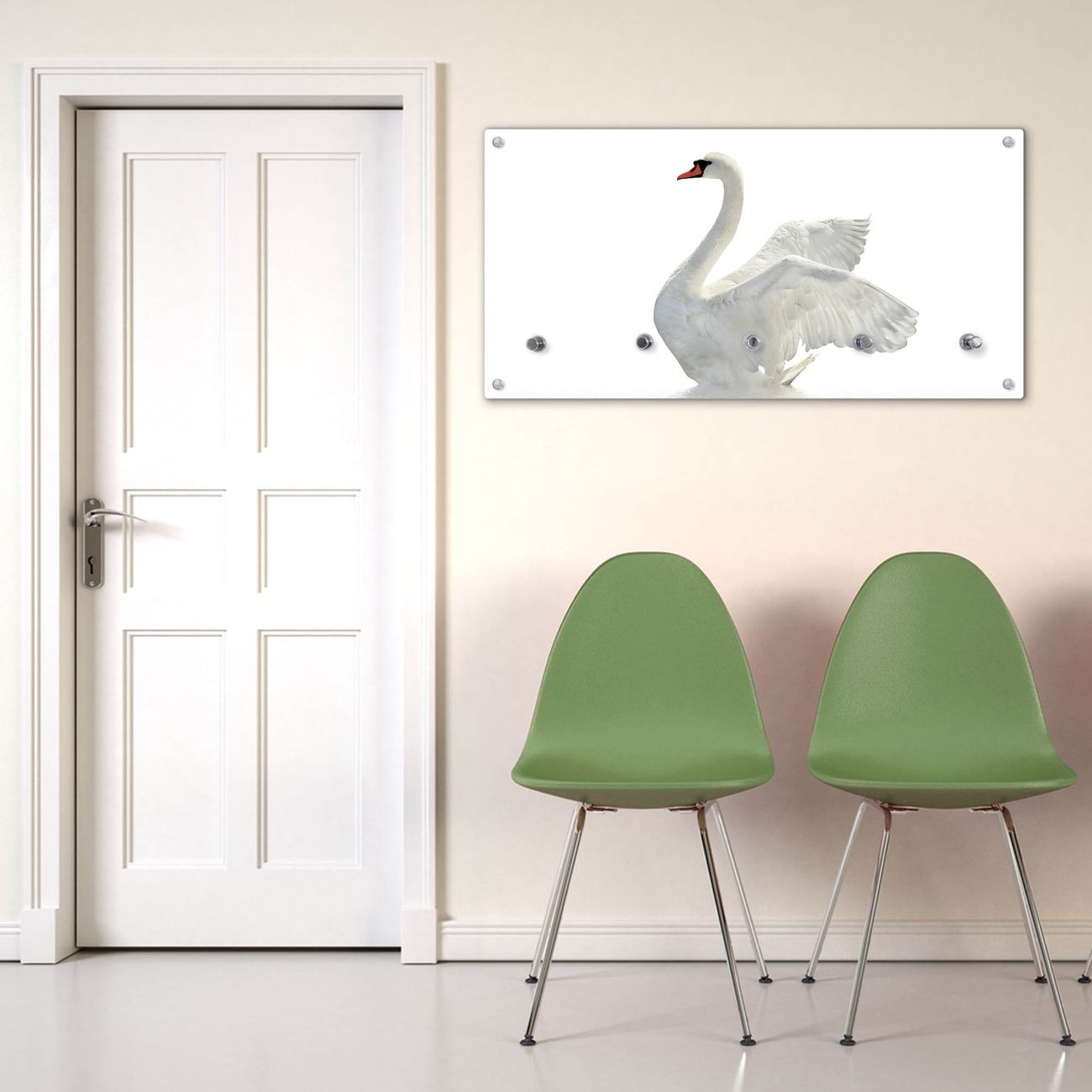 Wandgarderobe Glas 80x40cm Motiv Schwan