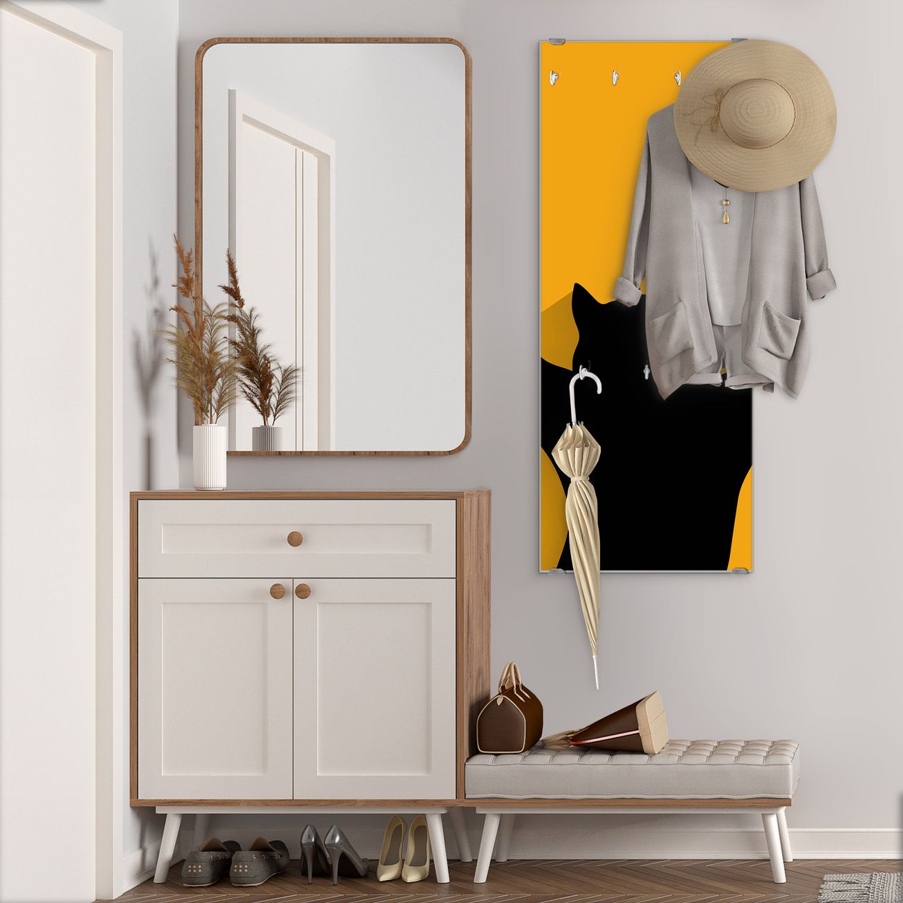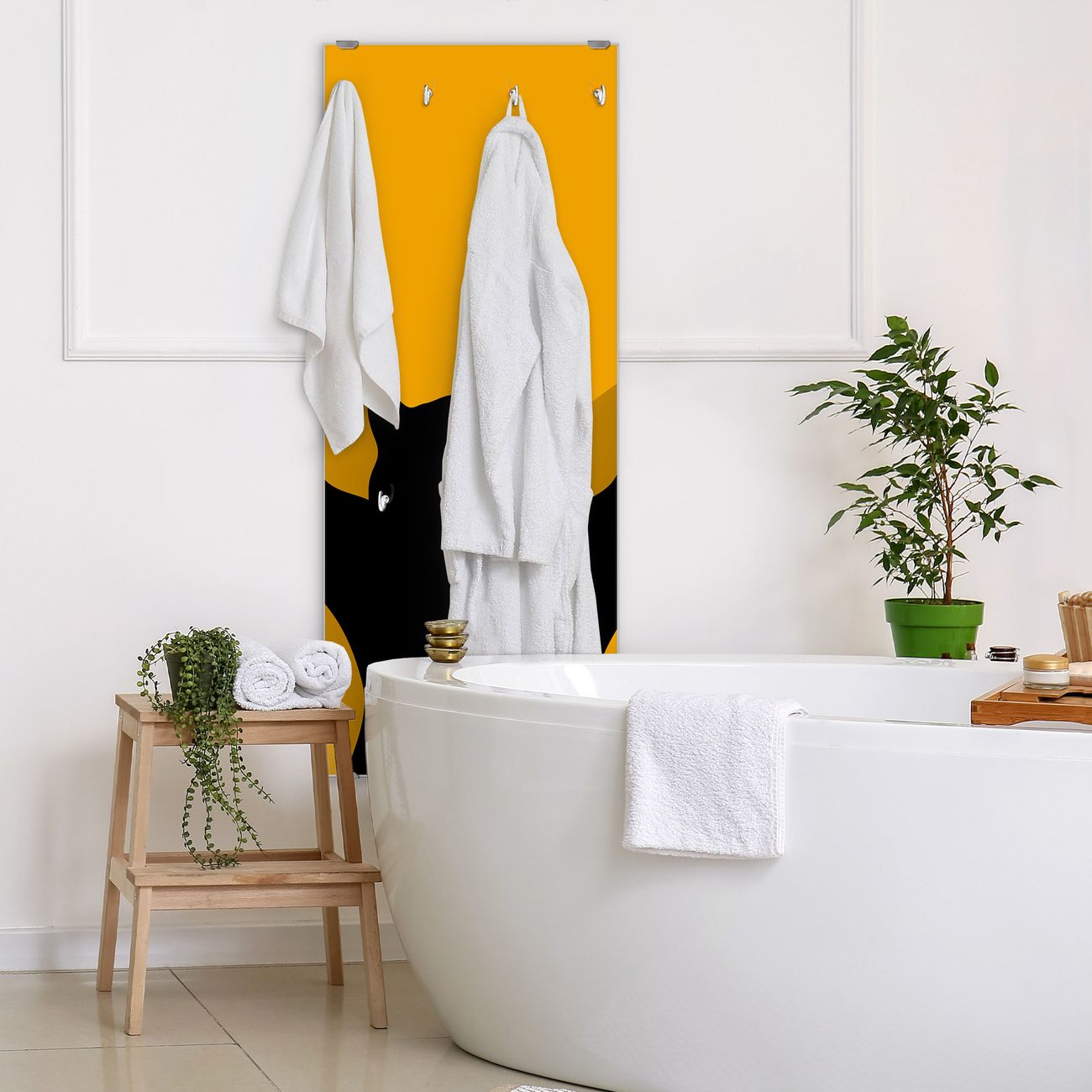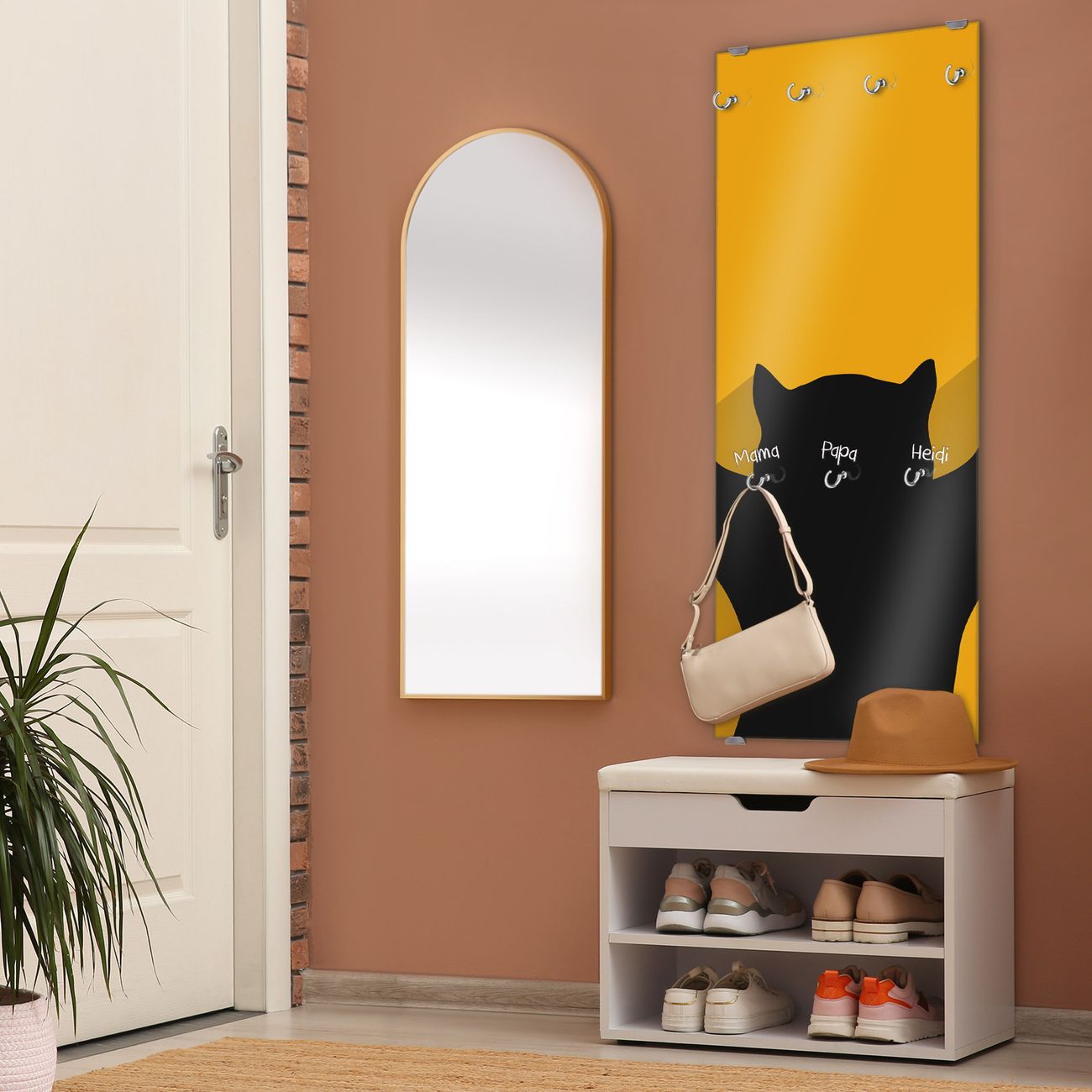 FUNKTION: Die banjado Wandgarderobe mit Motiv Scratch ist Ihr täglicher Begleiter. Zuverlässig hängen hier Ihre Jacken und Mäntel griffbereit. Das Echtglas ist Ihr Paneel auch beschreibbar und wieder abwischbar. DESIGN: Sie erhalten eine Garderobenleiste aus elegantem Echtglas mit dem Farbbrillanten Motiv Scratch hinterklebt. Das Design ist zeitlos klassisch, ohne dabei auf Funktionalität zu verzichten. Suchen Sie aus einer Vielzahl von Motiven das für Ihre Einrichtung Passende aus. DETAILS: Die Flurgarderobe besteht aus 4mm gehärtetem Sicherheitsglas. Sie ist 50cm breit, 125cm hoch und 6cm tief. Die Garderobenhaken zur Selbstmontage präsentieren sich in Edelstahl-Optik, ebenso die Abstandshalter für die Wandmontage. Ihre neue Garderobe ist sofort einsatzbereit. NUTZEN: Ihre neue Garderobe hält nicht nur zuverlässig Ihre Kleidung, sie ist auch optisch ein Blickfang. Durch das Glas können Sie an der Garderobe mit wasserlöslichen Kreidestiften oder Whiteboard-Markern auch Nachrichten hinterlassen. BANJADO: Wir sind ein kleines kreatives Team aus Sachsen und entwickeln Produkte die Design und Funktionalität verbinden sollen. Viel Freude mit Ihrer neuen Garderobe wünscht das banjado-Team!
