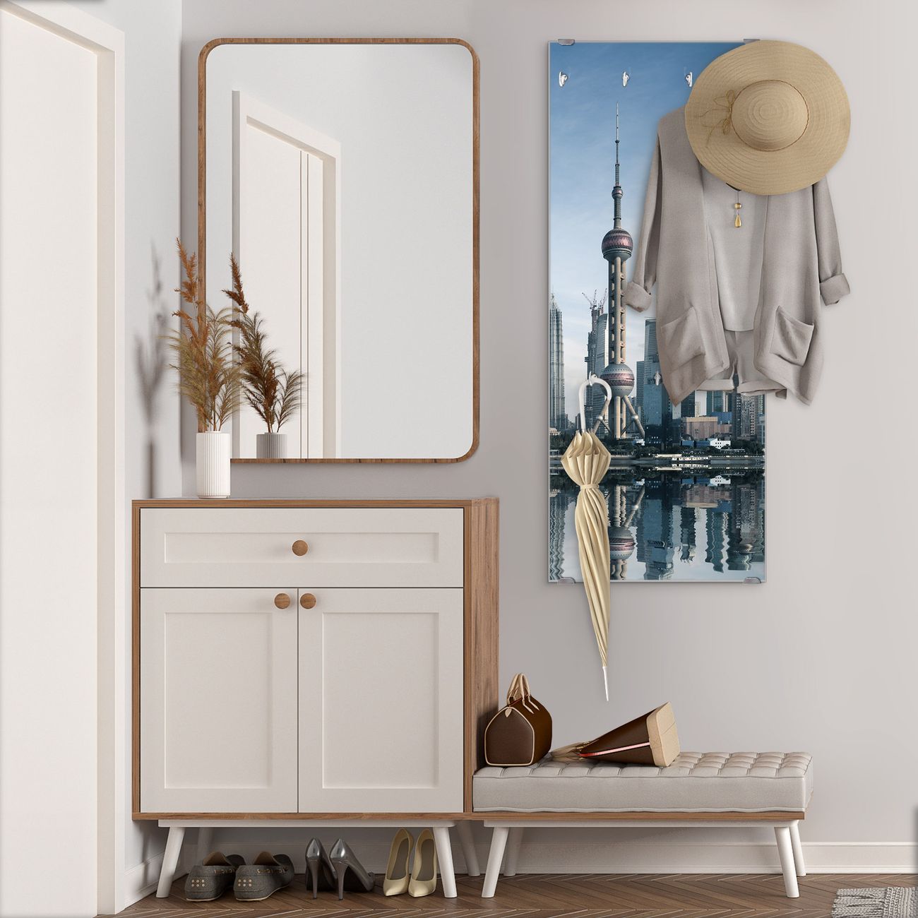 Flurgarderobe Glas 50x125cm Motiv Shanghai