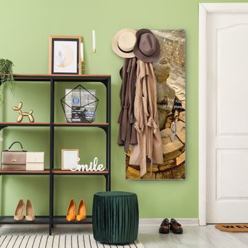 FUNKTION: Die banjado Wandgarderobe mit Motiv Sitzender Buddha ist Ihr täglicher Begleiter. Zuverlässig hängen hier Ihre Jacken und Mäntel griffbereit. Das Echtglas ist Ihr Paneel auch beschreibbar und wieder abwischbar. DESIGN: Sie erhalten eine Garderobenleiste aus elegantem Echtglas mit dem Farbbrillanten Motiv Sitzender Buddha hinterklebt. Das Design ist zeitlos klassisch, ohne dabei auf Funktionalität zu verzichten. Suchen Sie aus einer Vielzahl von Motiven das für Ihre Einrichtung Passende aus. DETAILS: Die Flurgarderobe besteht aus 4mm gehärtetem Sicherheitsglas. Sie ist 50cm breit, 125cm hoch und 6cm tief. Die Garderobenhaken zur Selbstmontage präsentieren sich in Edelstahl-Optik, ebenso die Abstandshalter für die Wandmontage. Ihre neue Garderobe ist sofort einsatzbereit. NUTZEN: Ihre neue Garderobe hält nicht nur zuverlässig Ihre Kleidung, sie ist auch optisch ein Blickfang. Durch das Glas können Sie an der Garderobe mit wasserlöslichen Kreidestiften oder Whiteboard-Markern auch Nachrichten hinterlassen. BANJADO: Wir sind ein kleines kreatives Team aus Sachsen und entwickeln Produkte die Design und Funktionalität verbinden sollen. Viel Freude mit Ihrer neuen Garderobe wünscht das banjado-Team!