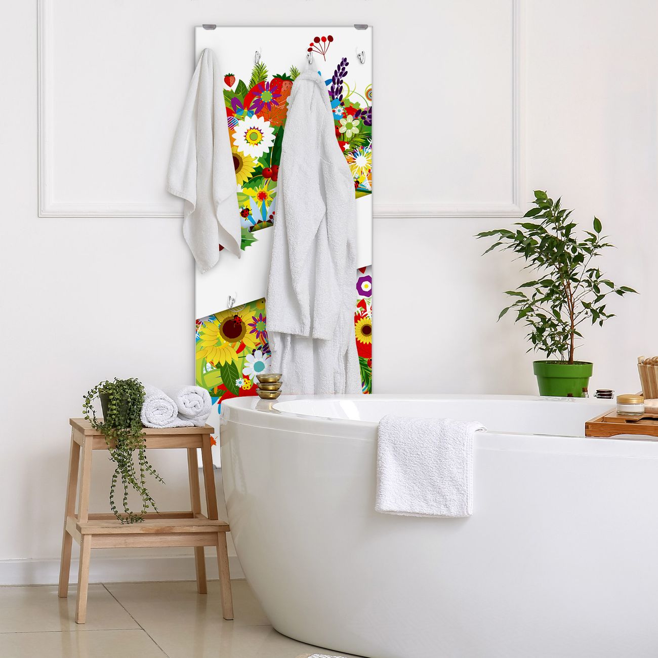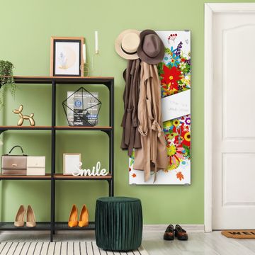 FUNKTION: Die banjado Wandgarderobe mit Motiv Sommer ist Ihr täglicher Begleiter. Zuverlässig hängen hier Ihre Jacken und Mäntel griffbereit. Das Echtglas ist Ihr Paneel auch beschreibbar und wieder abwischbar. DESIGN: Sie erhalten eine Garderobenleiste aus elegantem Echtglas mit dem Farbbrillanten Motiv Sommer hinterklebt. Das Design ist zeitlos klassisch, ohne dabei auf Funktionalität zu verzichten. Suchen Sie aus einer Vielzahl von Motiven das für Ihre Einrichtung Passende aus. DETAILS: Die Flurgarderobe besteht aus 4mm gehärtetem Sicherheitsglas. Sie ist 50cm breit, 125cm hoch und 6cm tief. Die Garderobenhaken zur Selbstmontage präsentieren sich in Edelstahl-Optik, ebenso die Abstandshalter für die Wandmontage. Ihre neue Garderobe ist sofort einsatzbereit. NUTZEN: Ihre neue Garderobe hält nicht nur zuverlässig Ihre Kleidung, sie ist auch optisch ein Blickfang. Durch das Glas können Sie an der Garderobe mit wasserlöslichen Kreidestiften oder Whiteboard-Markern auch Nachrichten hinterlassen. BANJADO: Wir sind ein kleines kreatives Team aus Sachsen und entwickeln Produkte die Design und Funktionalität verbinden sollen. Viel Freude mit Ihrer neuen Garderobe wünscht das banjado-Team!